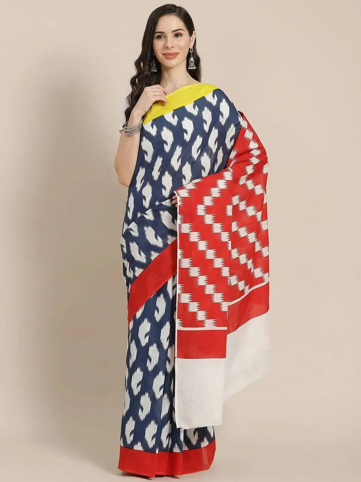 Blue Printed Cotton Saree