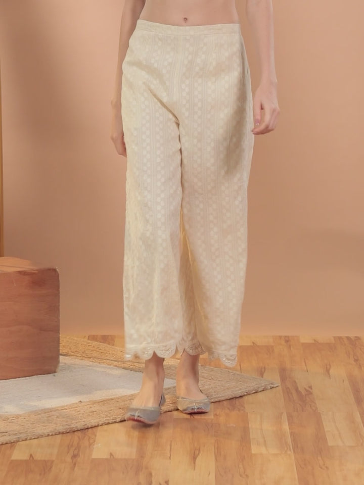 Cream Self Design Cotton Palazzos