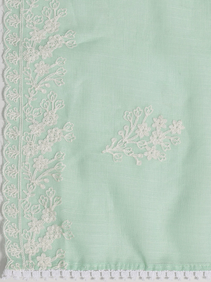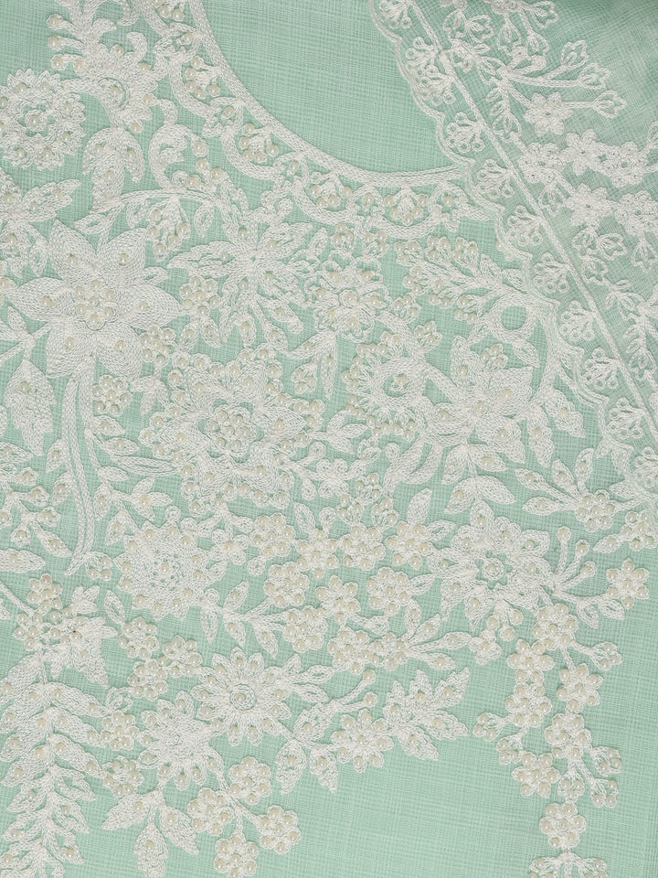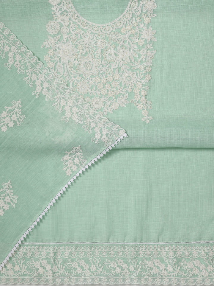 Green Embroidered Silk blend Dress Material With Dupatta