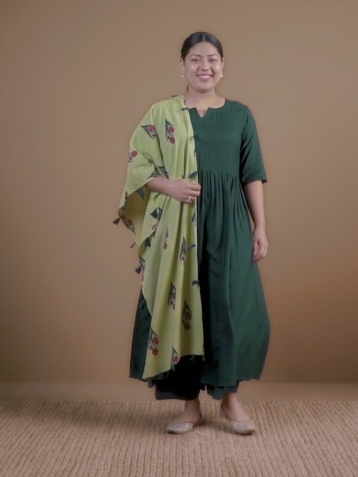 Plus Size Green Solid Rayon Anarkali Kurta With Palazzos & Stole