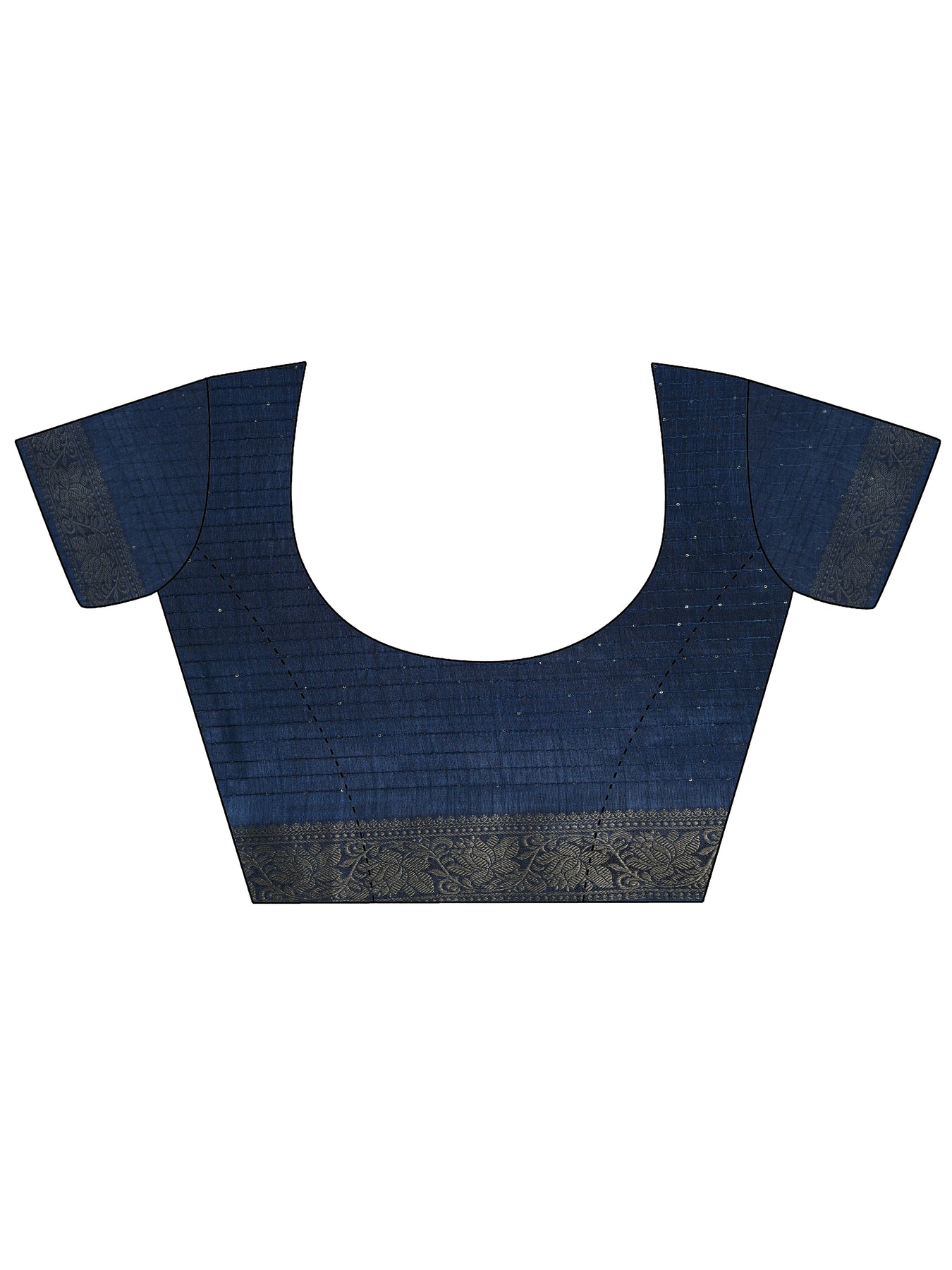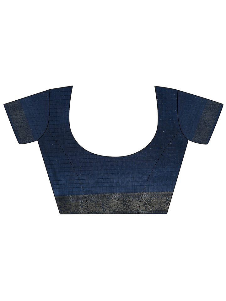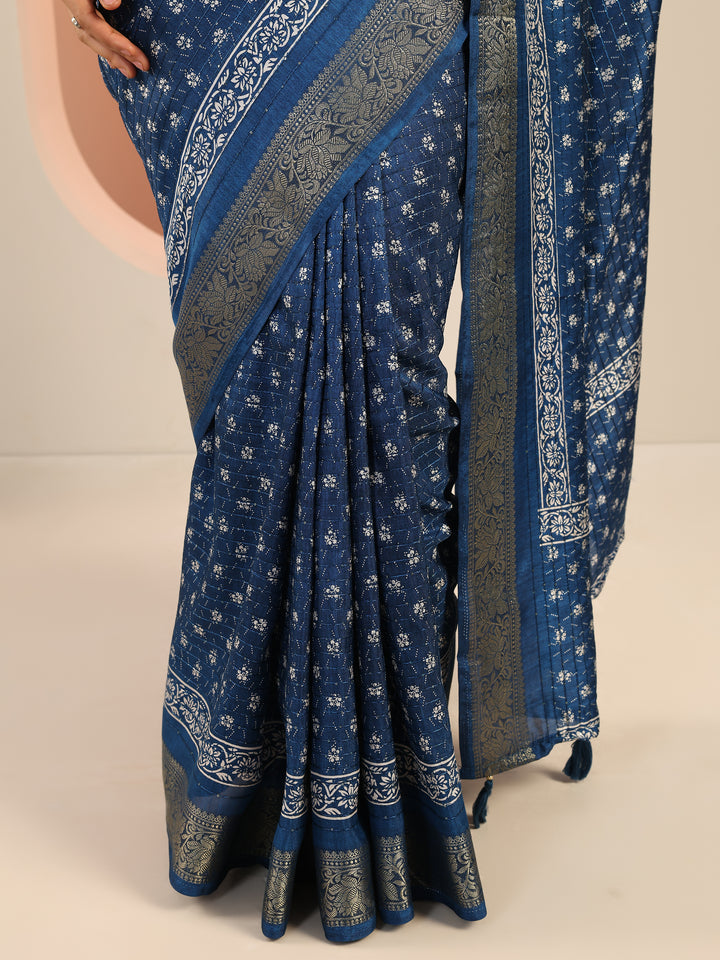 Navy Blue Printed Silk Saree With Unstitched Blouse Piece