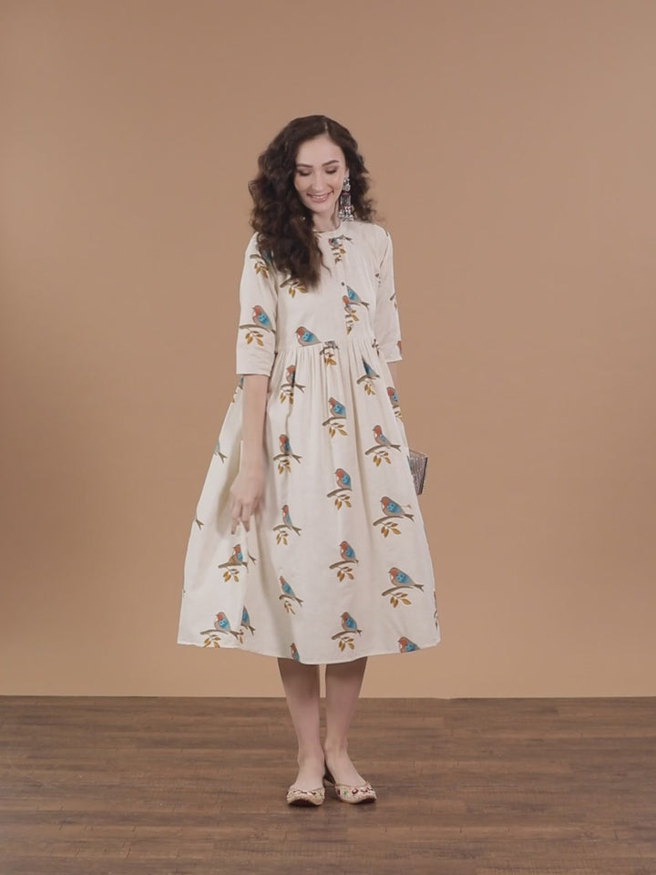 Off White Printed Cotton Dress