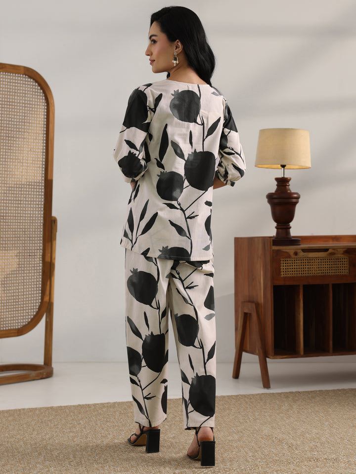 Off White Printed Cotton Straight Co-Ord Sets