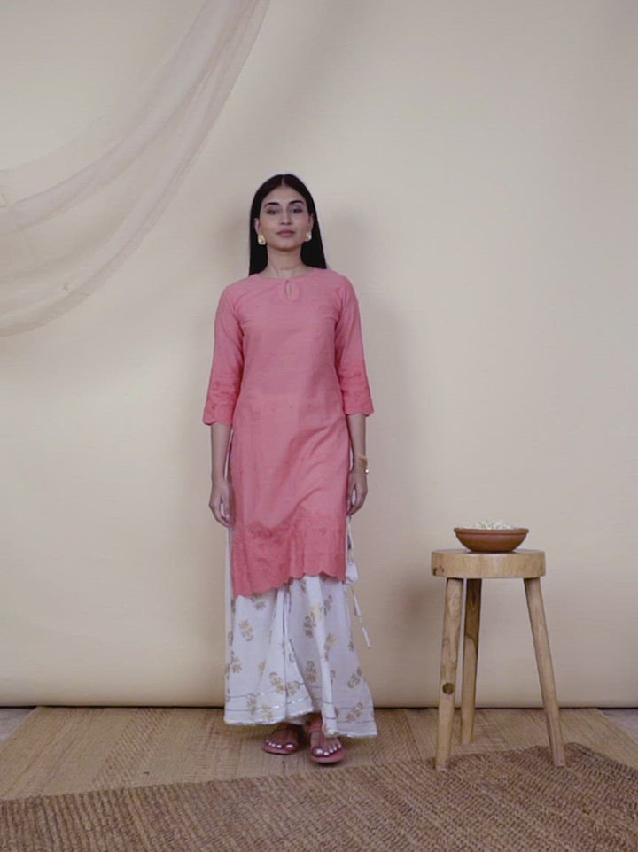 Pink Embroidered Cotton Kurta