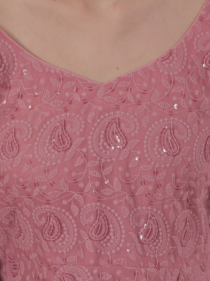 Pink Embroidered Georgette Anarkali Kurta With Churidar & Dupatta