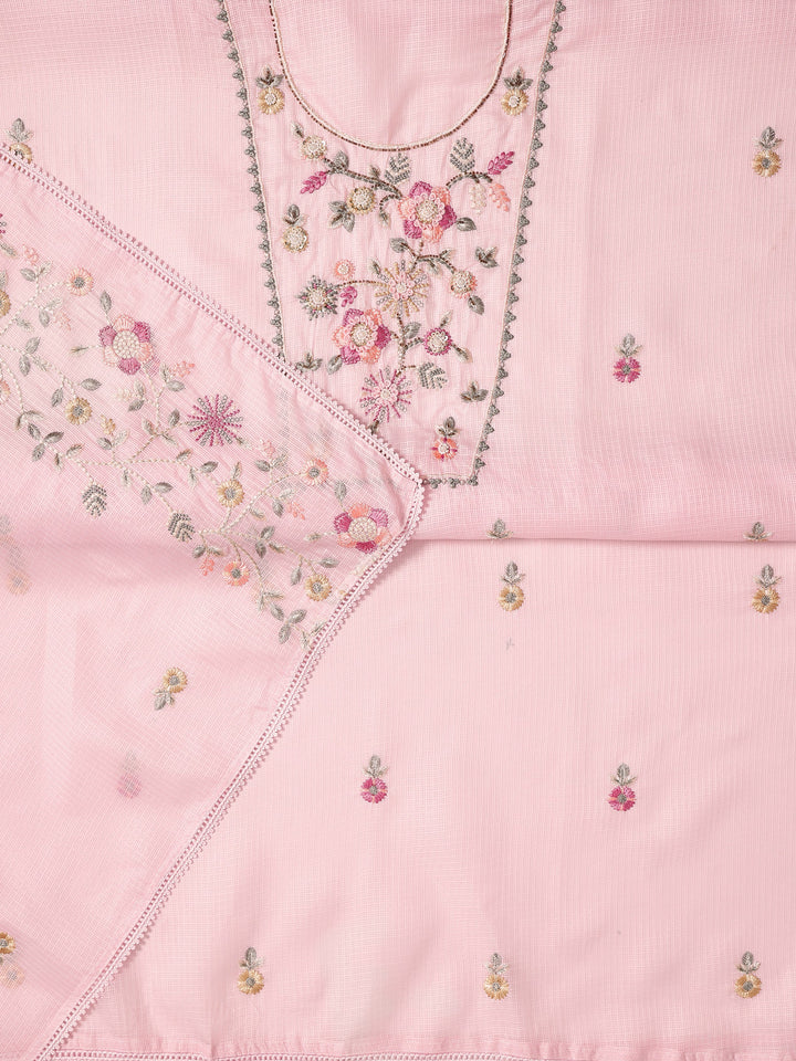 Pink Embroidered Silk blend Dress Material With Dupatta