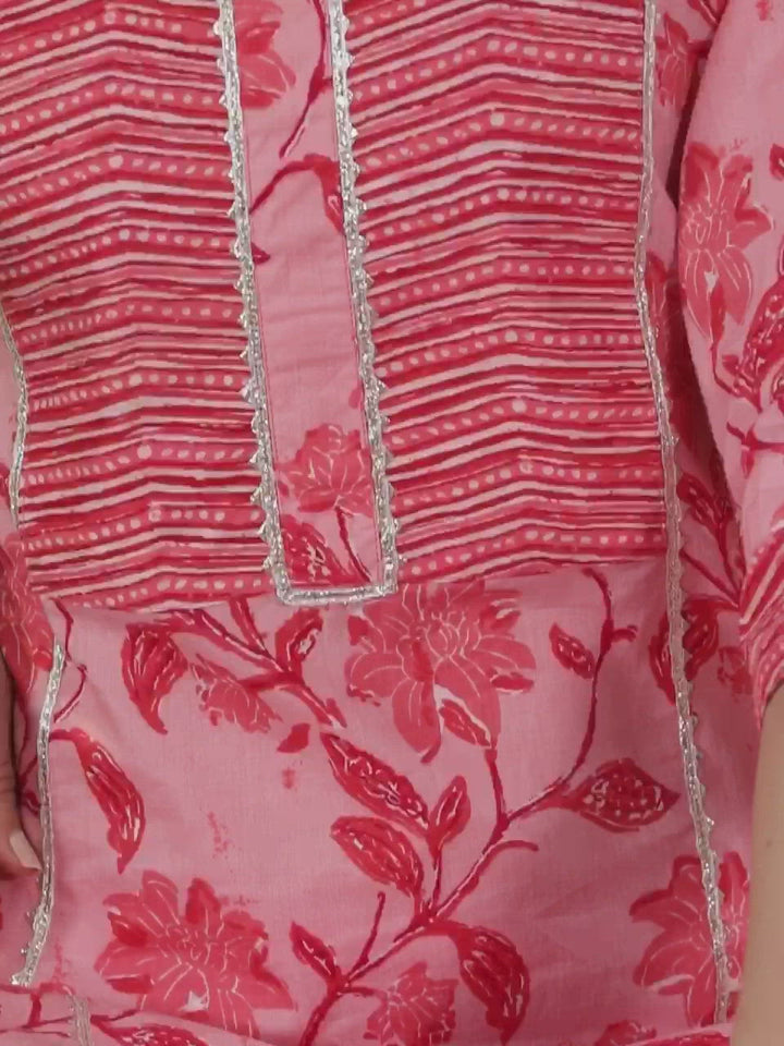 Our pink and red cotton straight-fit features a round neckline, and statement yoke design. Adorned with Gota Patti details, this refreshing style is ideal for work and beyond.