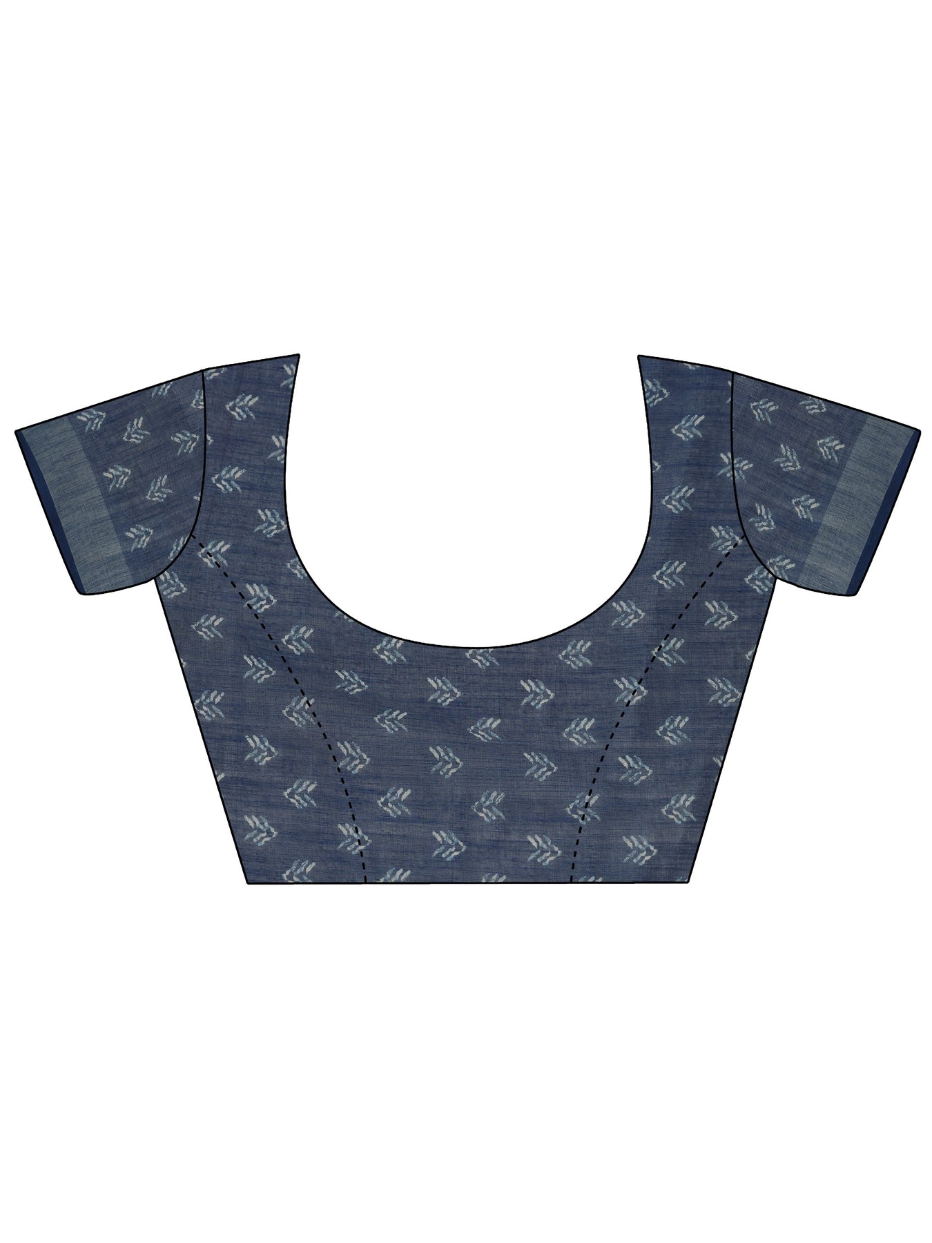 Blue Ikat Printed Cotton Blend Saree With Unstitched Blouse Piece