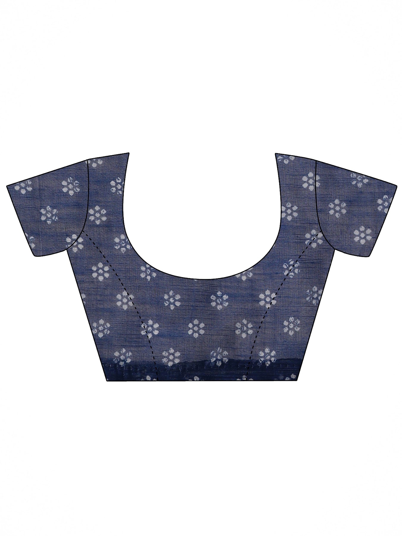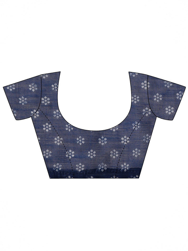 Our Navy Blue Printed Cotton Blend Saree Features Captivating Top Print. Complemented With An Unstitched Blouse Piece. This Charming Saree Is Perfect For Festive Wear.