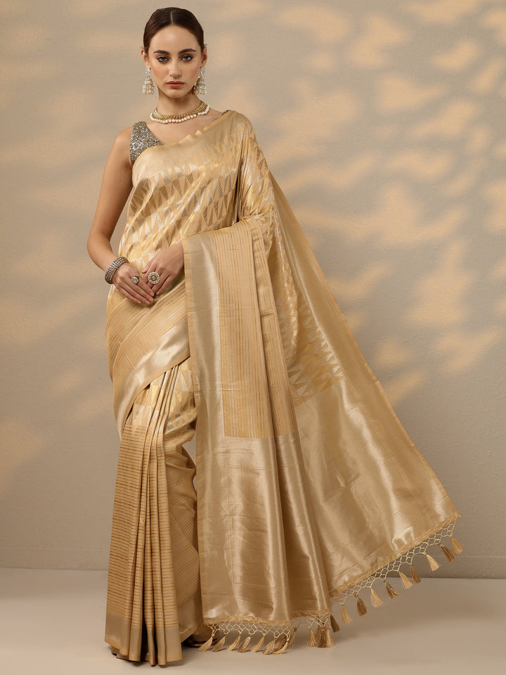 Gold Woven Design Banarasi Silk Blend Saree With Unstitched Blouse Pie