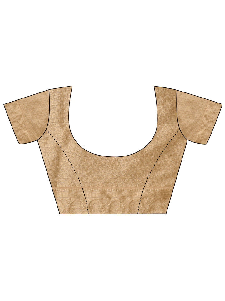 Our beige printed silk blend saree features captivating top pattern. Complemented with a blouse piece. This charming saree is perfect for occasion.