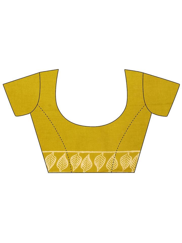 Our lime green printed cotton saree features captivating ethnic motifs. Complemented with a blouse piece. This charming saree is perfect for casual occasions.
