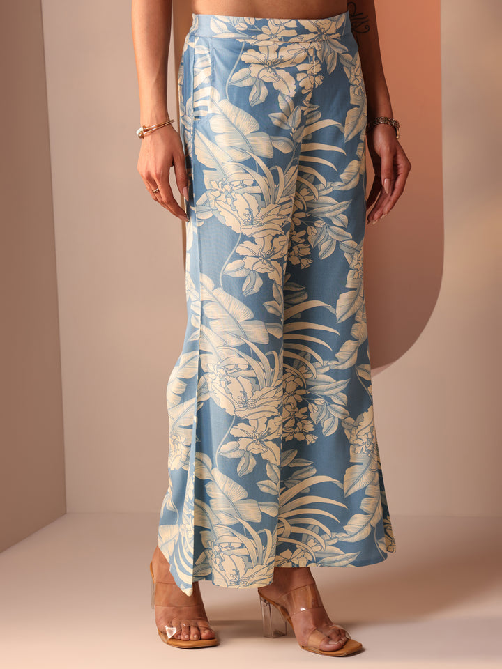 Blue Printed Rayon Straight Co-ord Sets