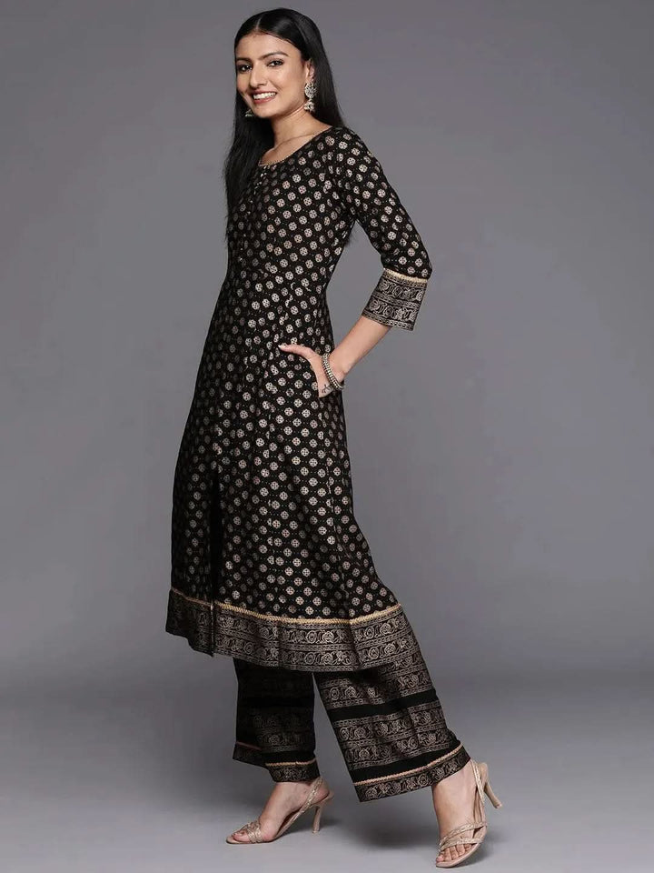 Black Printed Rayon A-Line Kurta