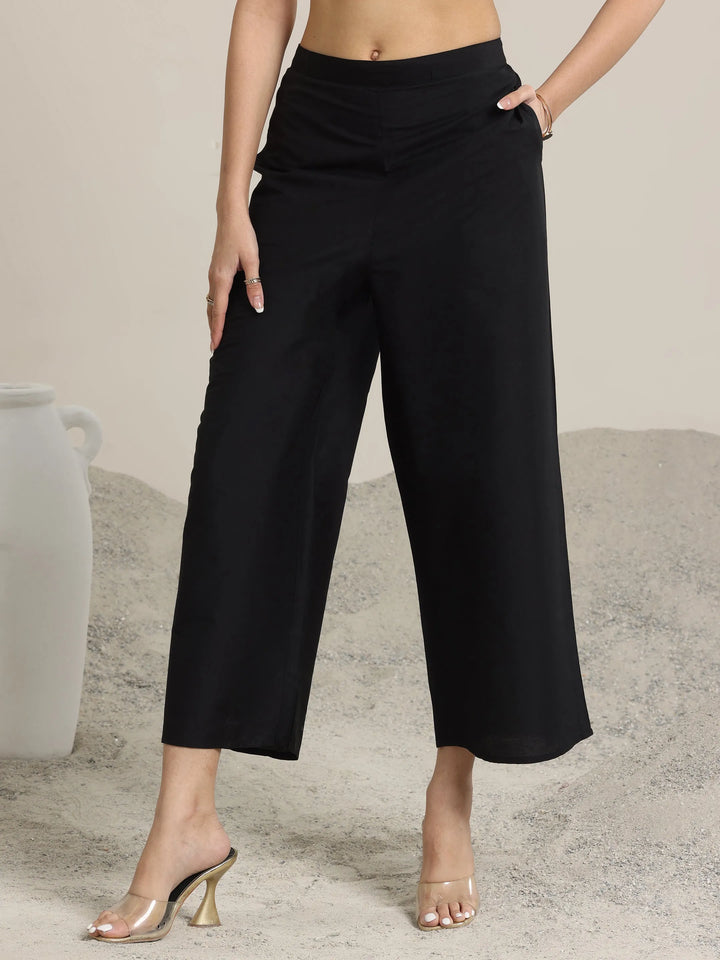 Black Solid Silk Trousers