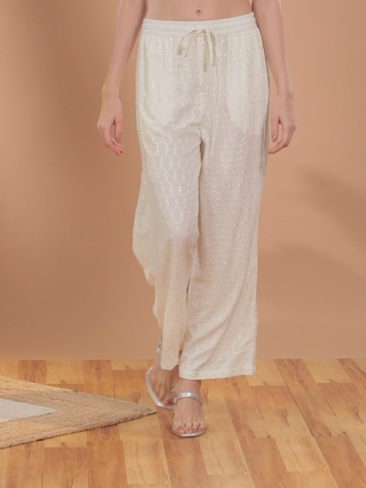 Cream Embroidered Rayon Palazzos