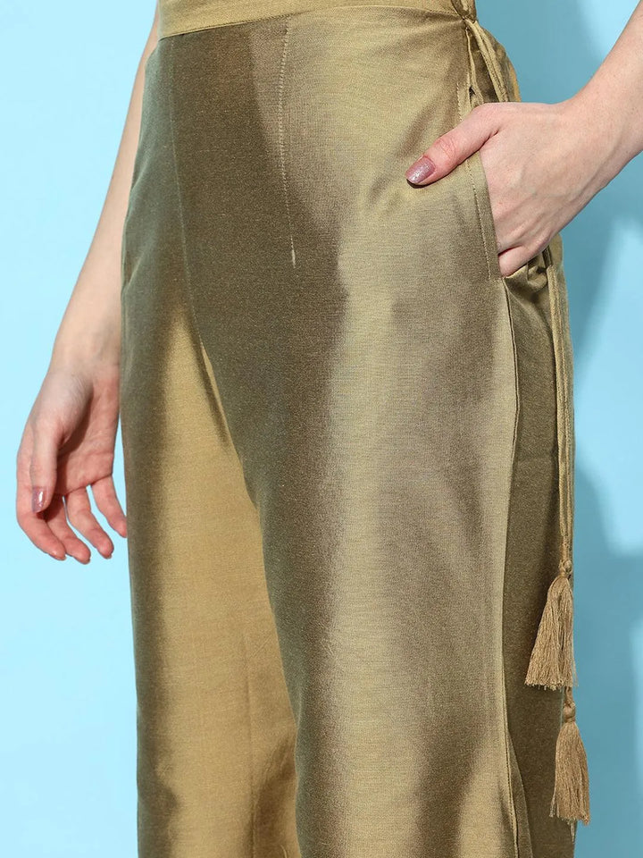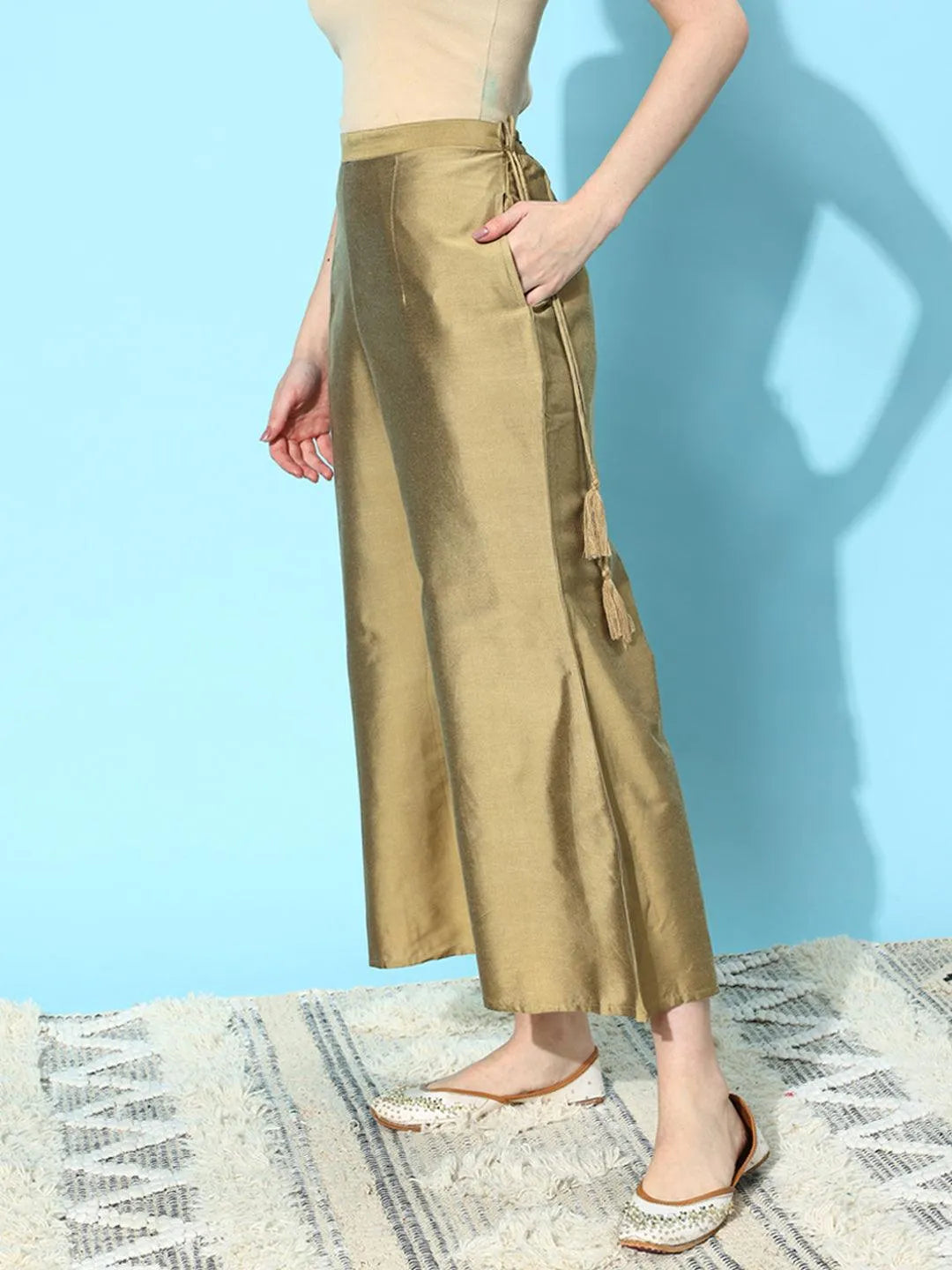 Gold Solid Silk Palazzos