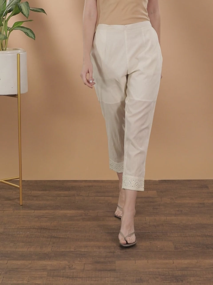 Buy Off White Embroidered Cotton Trousers - PL1056O-S | Libas Ethnic Wear Online