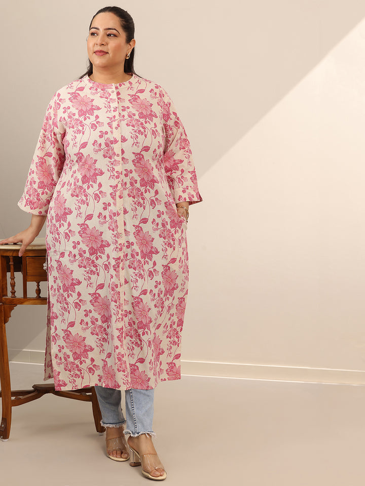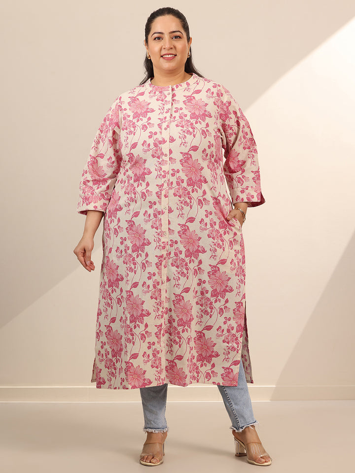 Plus Size Pink Printed Cotton Straight Kurta
