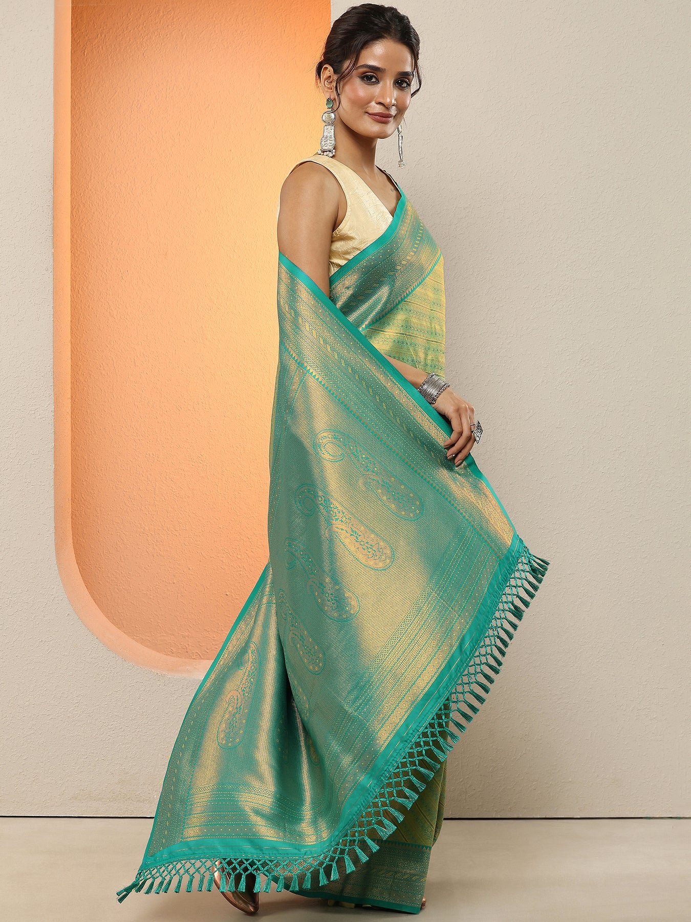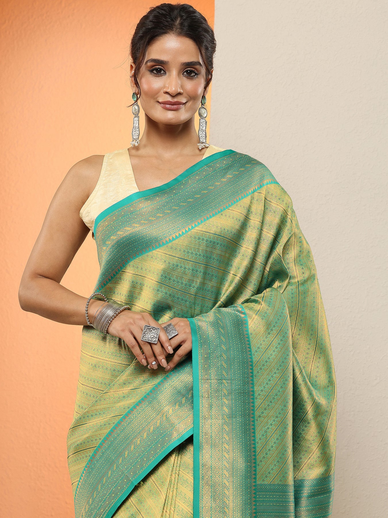 Green Woven Design Silk Blend Sarees With Unstitched Blouse Piece