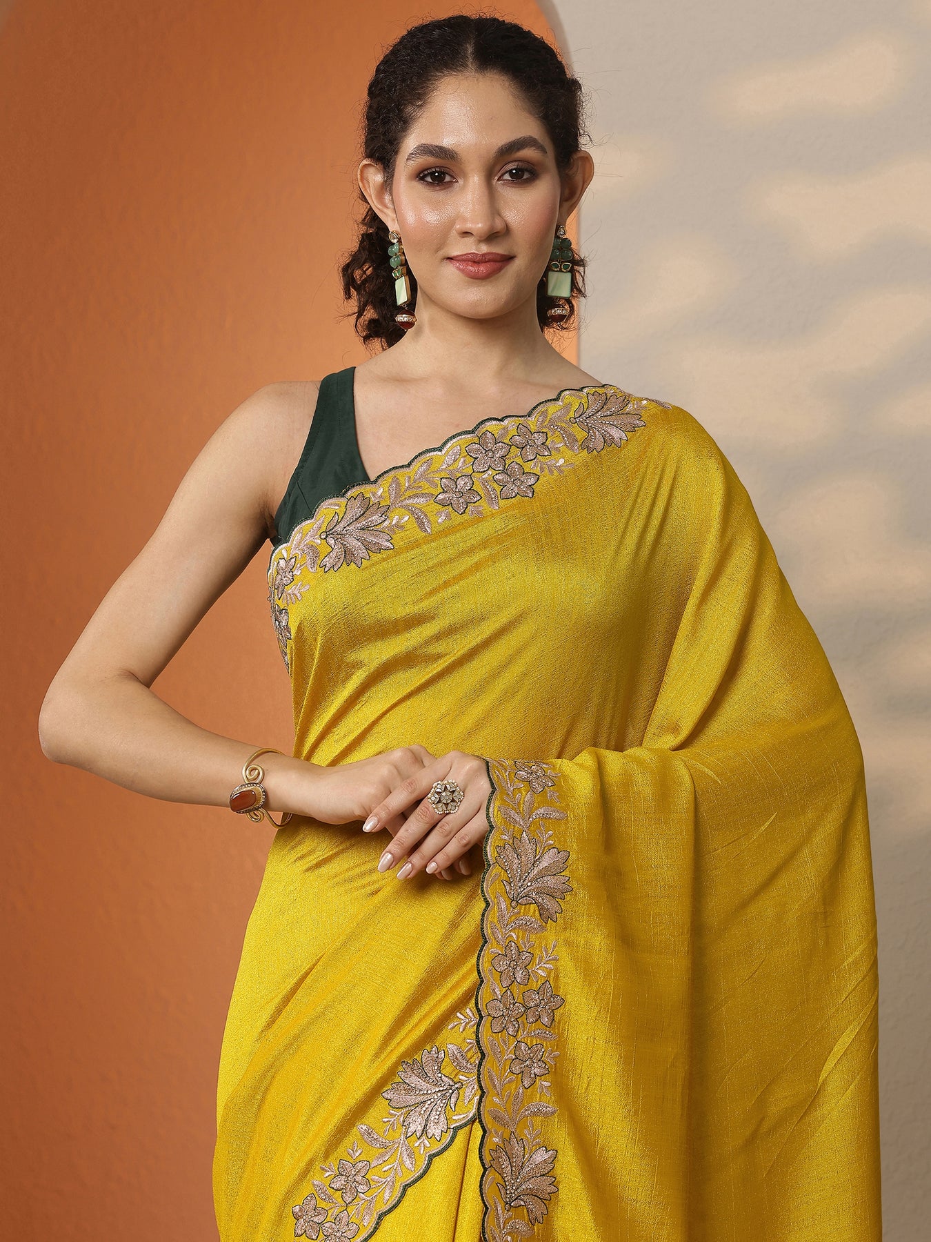 Mustard Solid Silk Blend Saree With Unstitched Blouse Piece