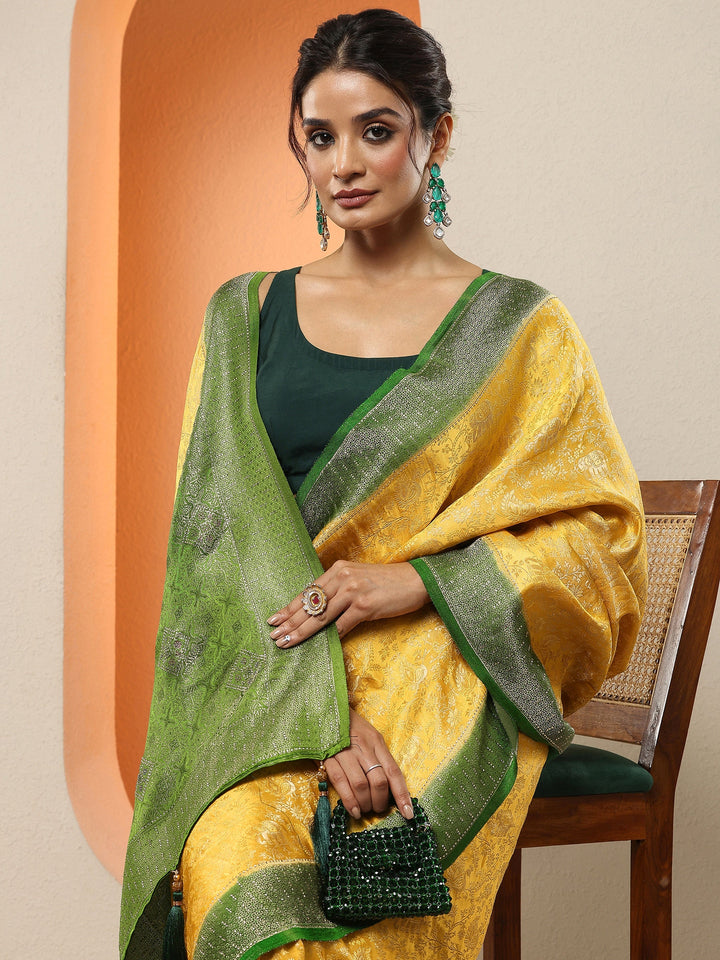 Mustard Woven Design Silk Blend Sarees With Unstitched Blouse Piece