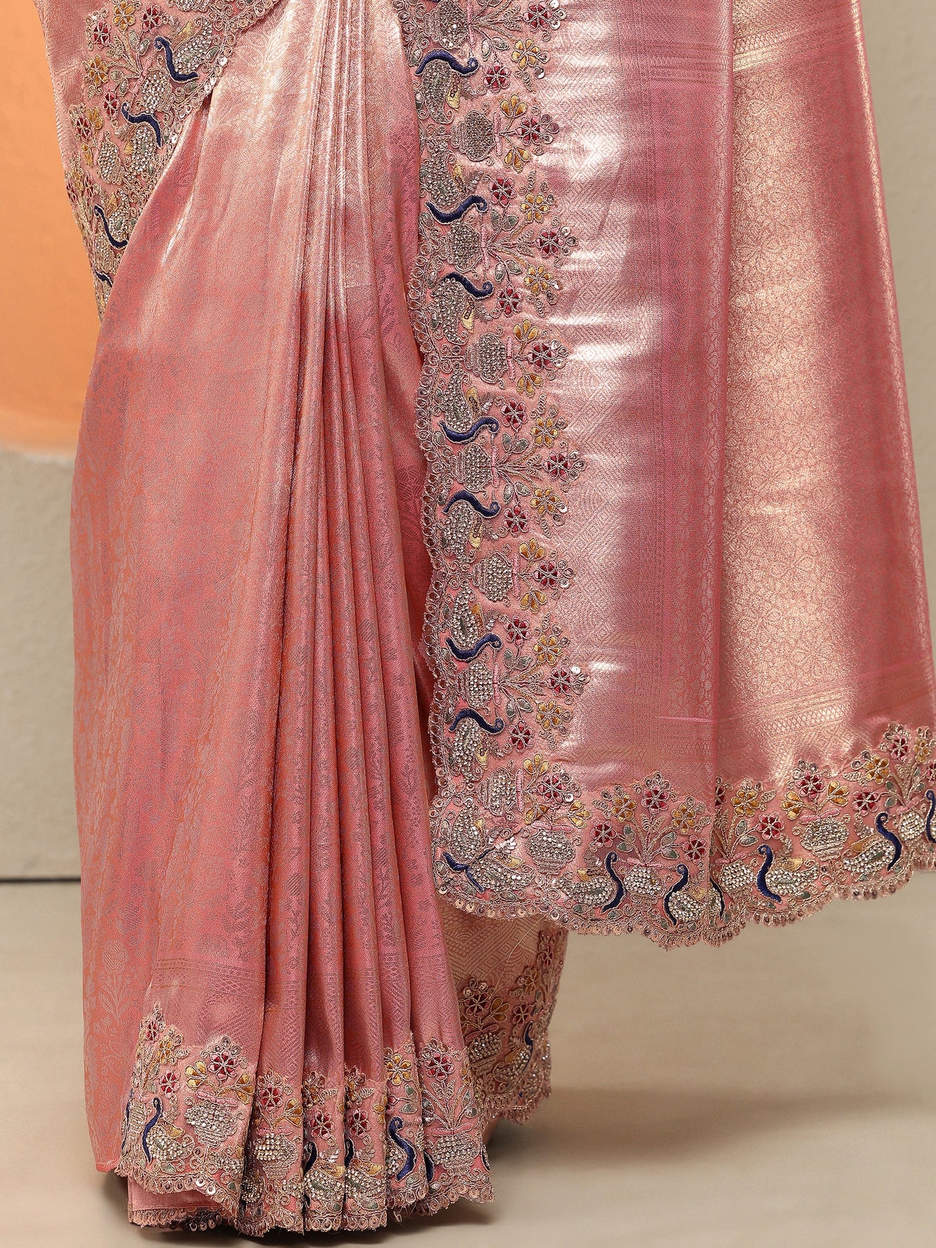 Pink Woven Design Silk Blend Sarees With Unstitched Blouse Piece
