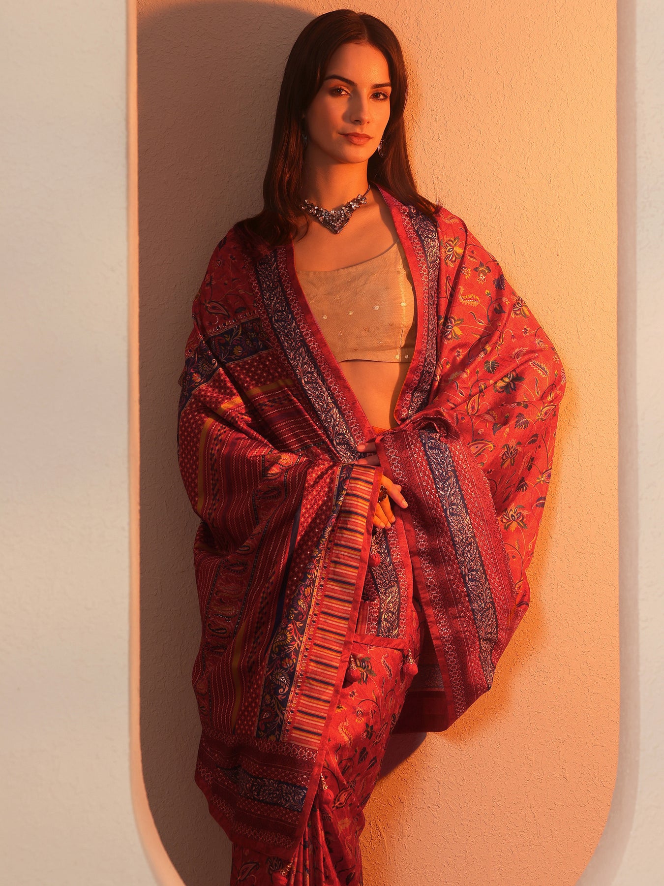 "product_collections": "Above 1000,Chanderi Silk Sarees,cocktail sarees,Diwali Sarees,Durga Puja Sarees,Engagement Sarees,Ethnic Wear for Women,Fancy Sarees,Floral Print Sarees,Golden Hour Sale,indian sarees,Karwa Chauth Saree,New Arrivals,Party Wear Sarees,Red Bridal Saree,Red Sarees,Sarees for Women,Silk Printed Sarees,Silk Sarees,Silken Treasures,Soft Silk Sarees,Swadeshi,Test,Traditional Sarees,Wedding Party Wear Sarees"