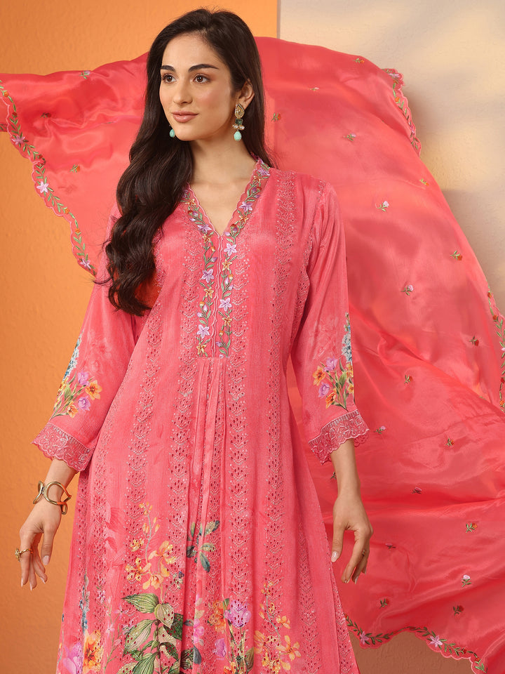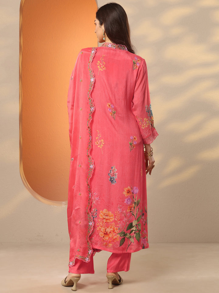 Libas Art Coral Embroidered Chinon Straight Suit Set With Dupatta