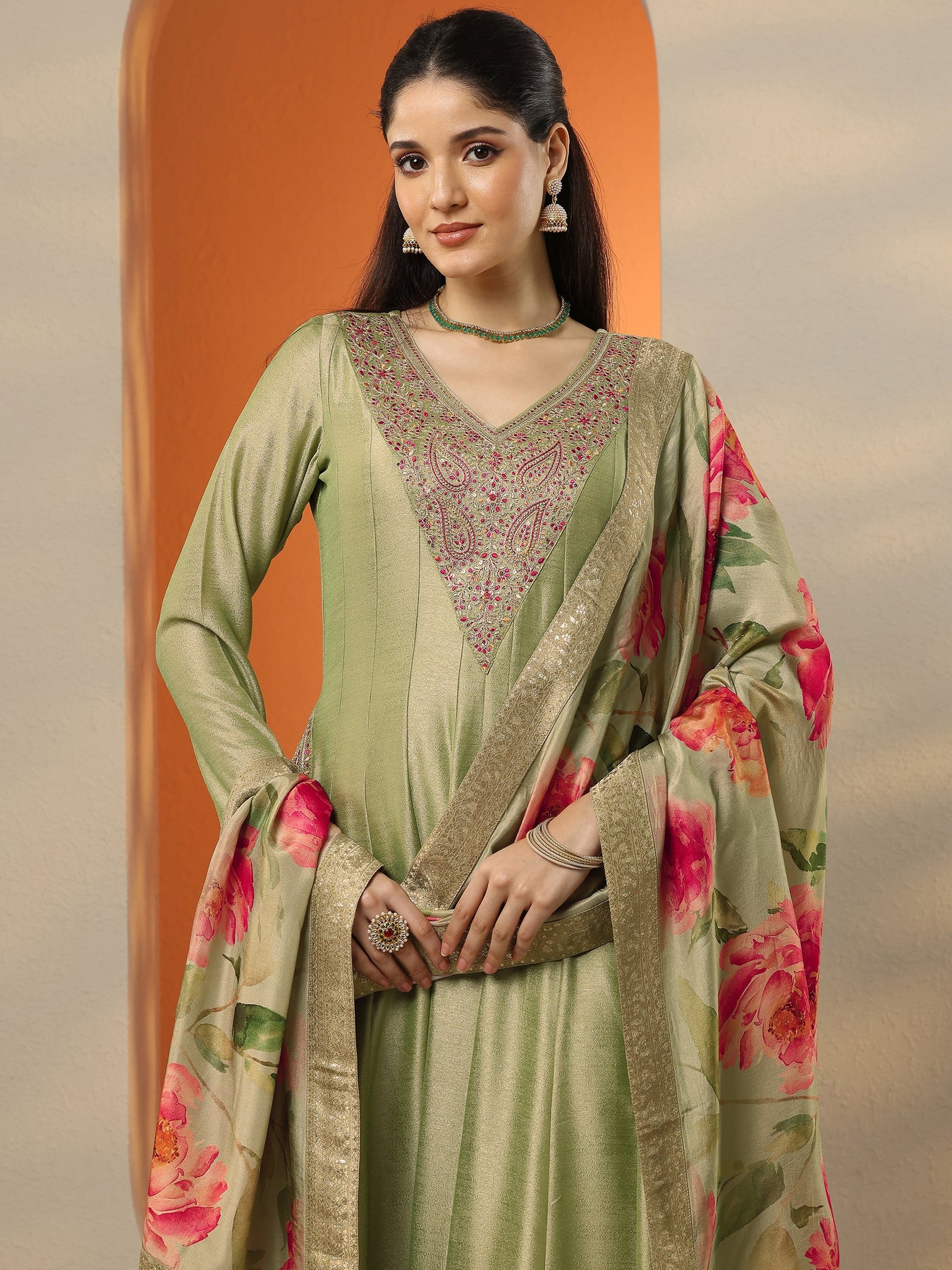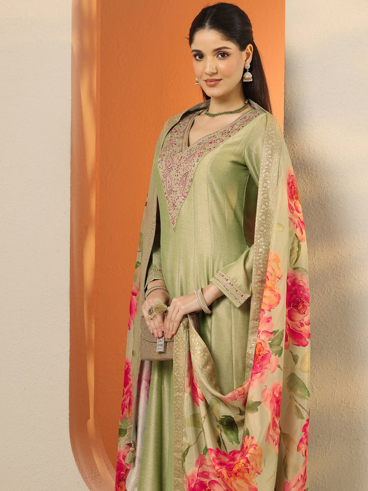 Libas Art Green Embroidered Silk Blend Anarkali Suit Set With Dupatta