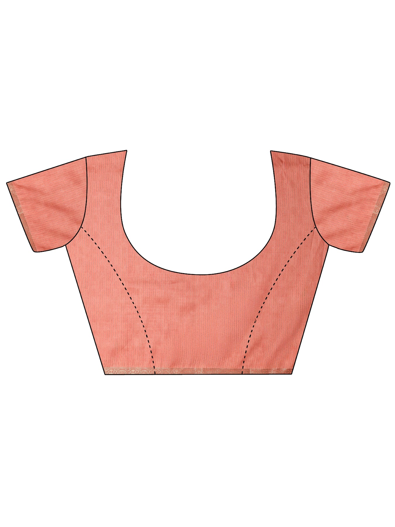 Peach Embellished Silk Blend Saree With Unstitched Blouse Piece