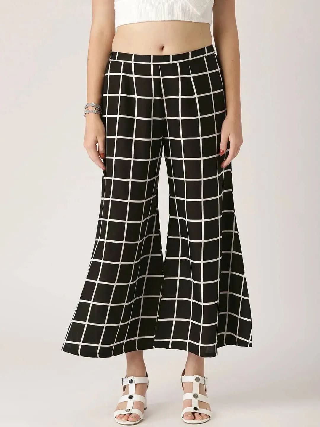 Buy Black Checkered Crepe Palazzos - PL513-XL | Libas Ethnic Wear Online