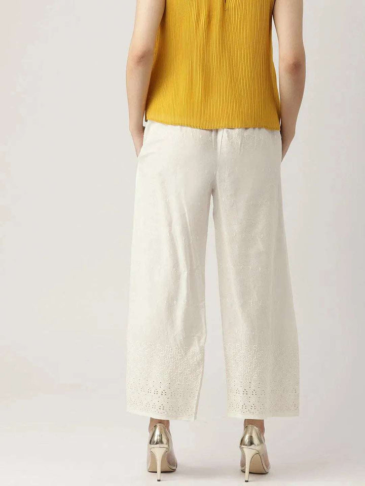 White Schiffli Cotton Palazzos