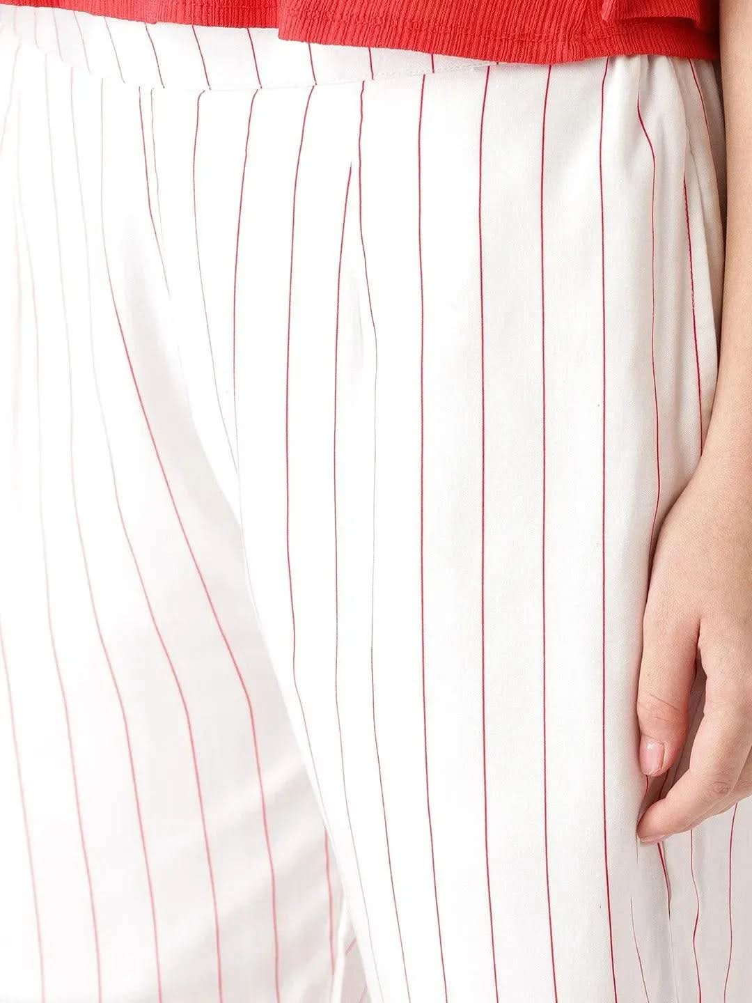White Striped Rayon Trousers