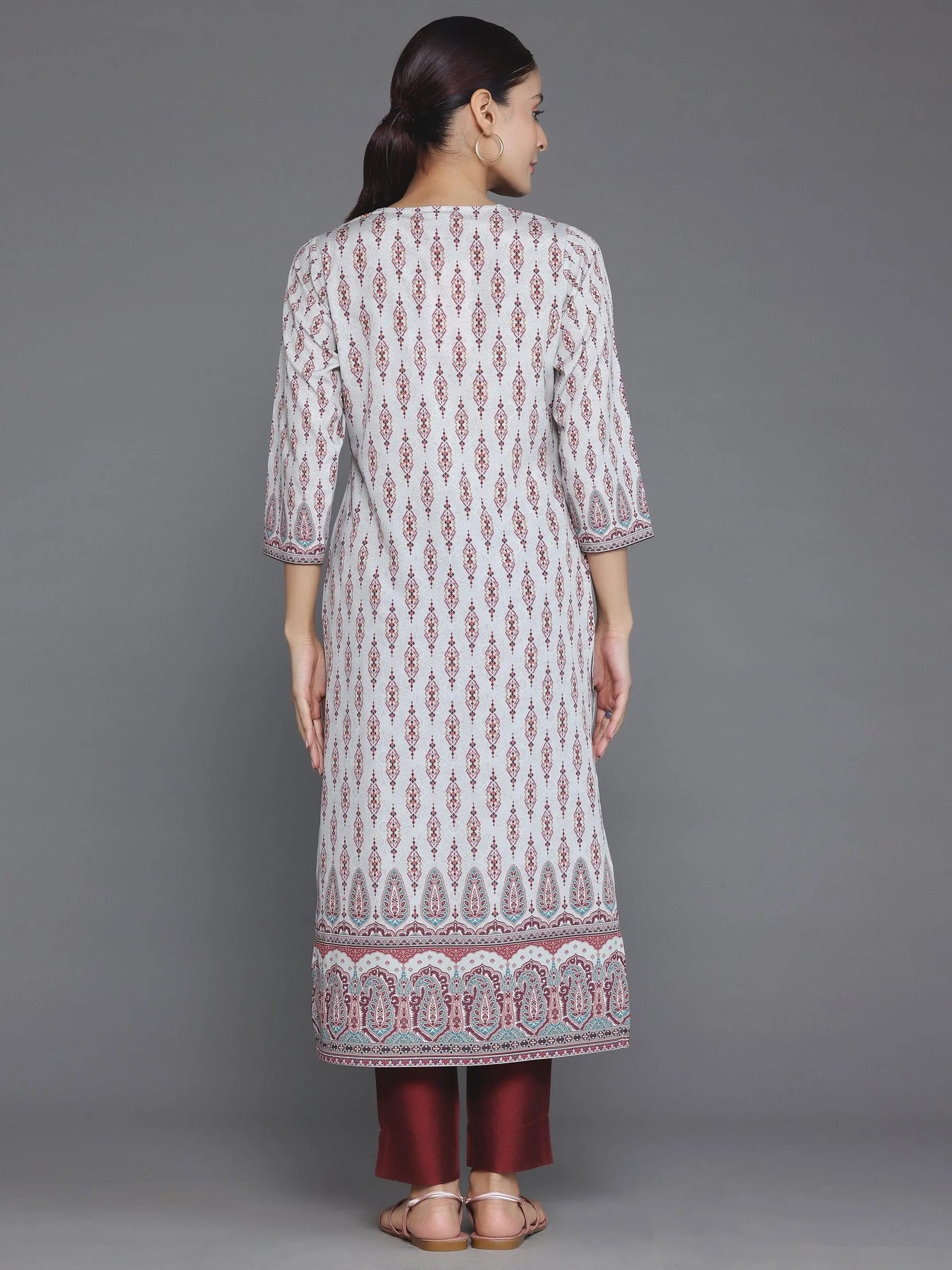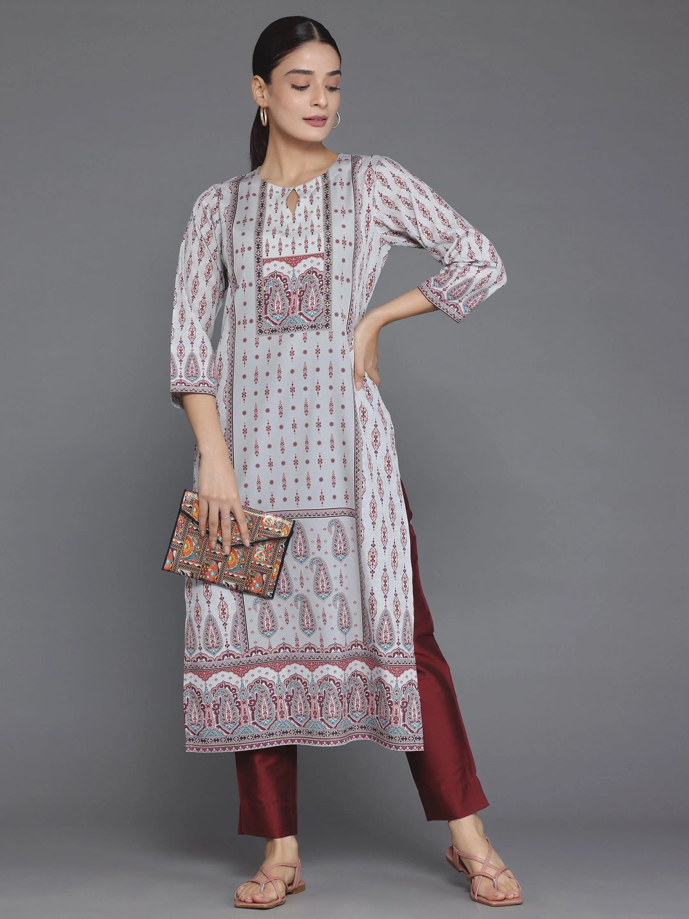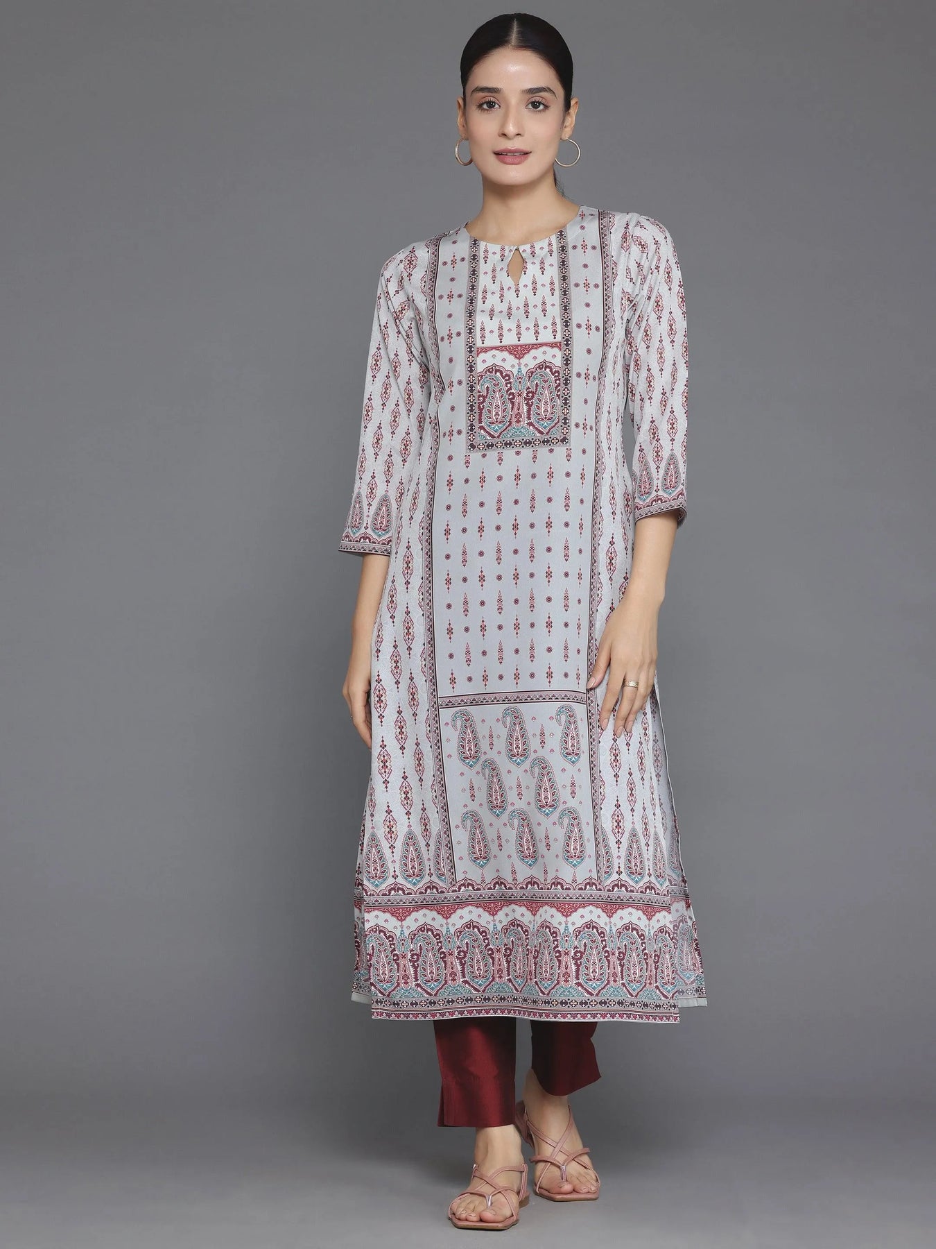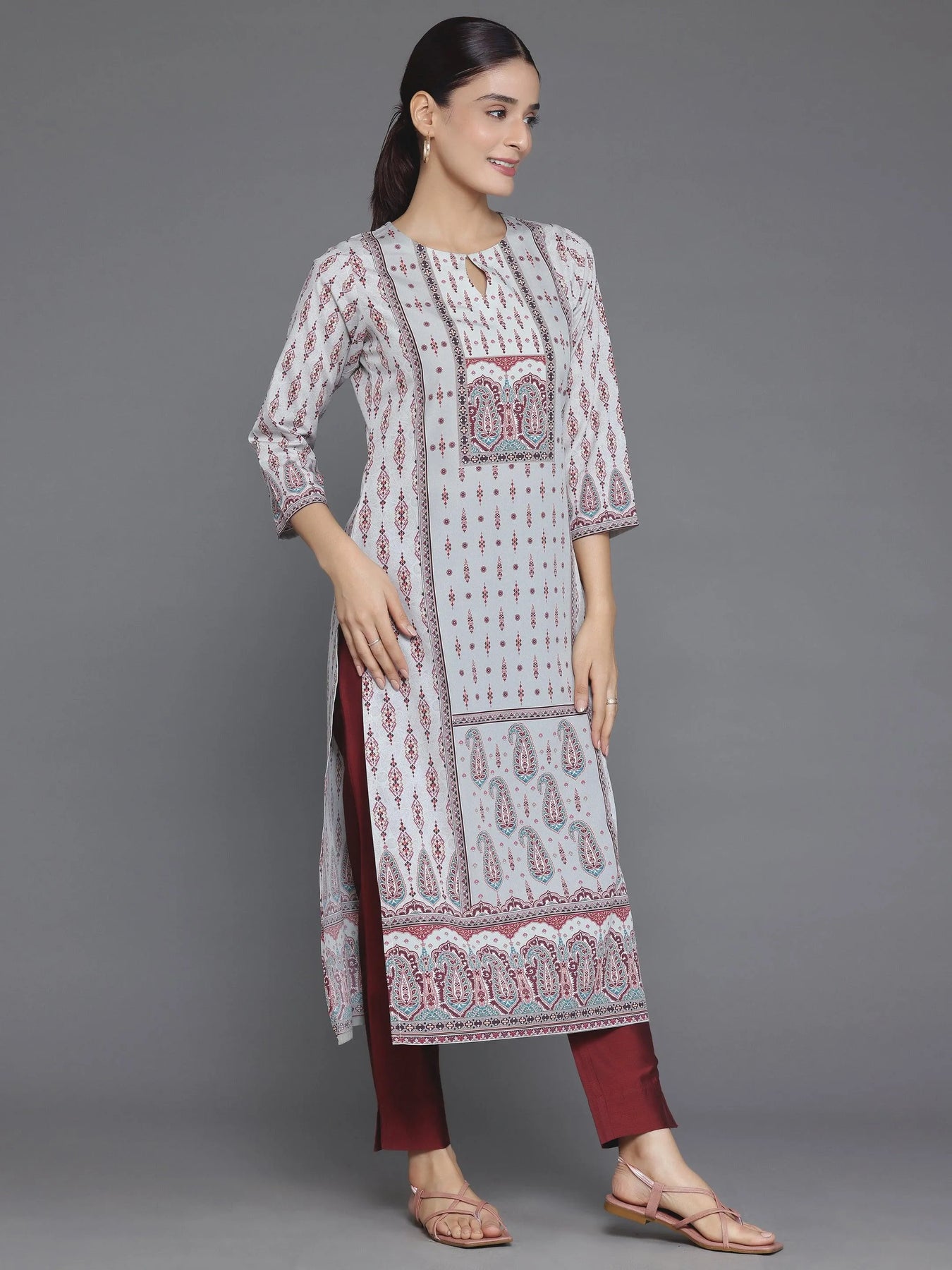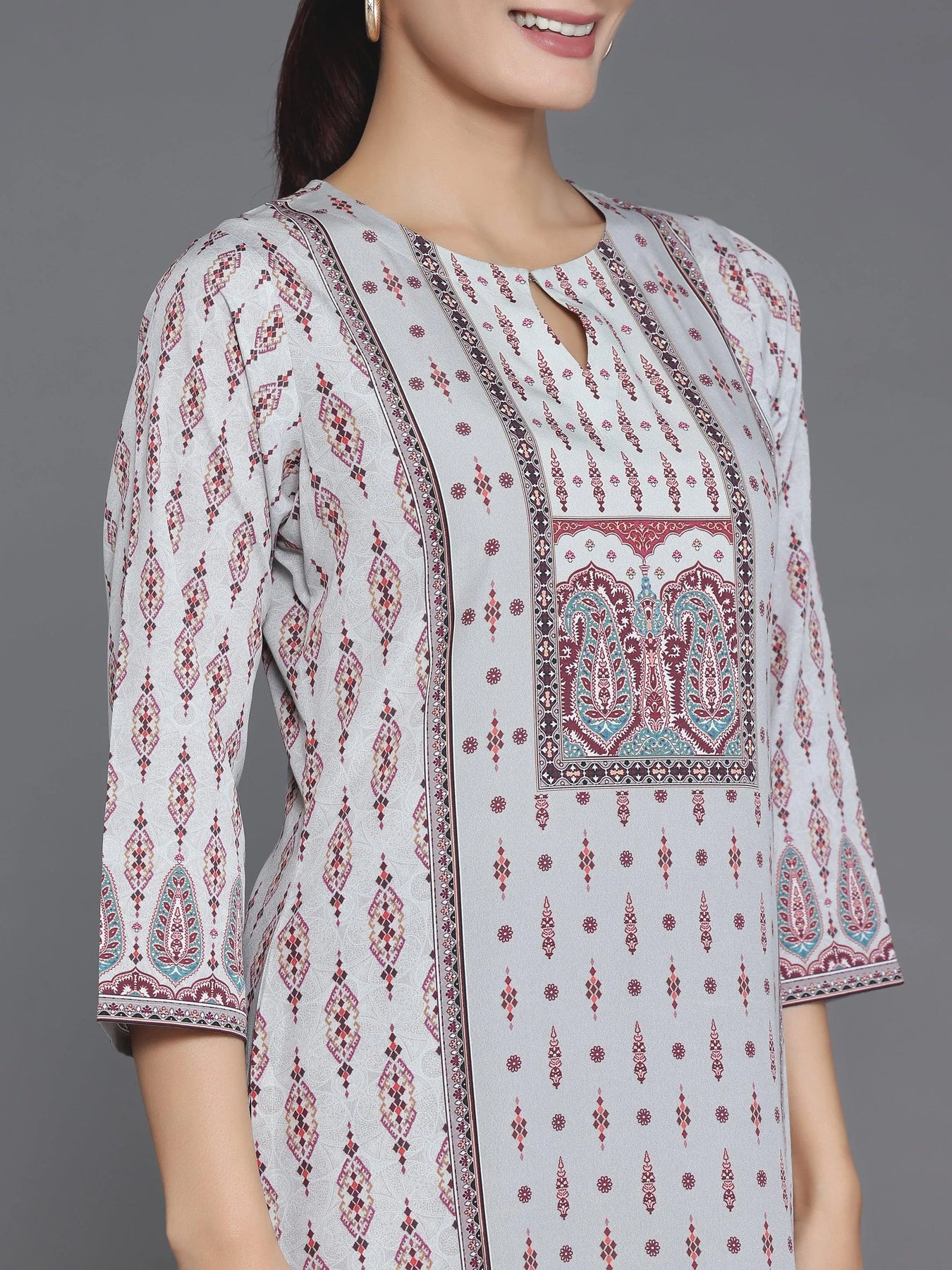 Our beige printed kurta, crafted in crepe fabric, features a keyhole neckline and three-quarter sleeves. Elevated with ethnic motifs prints, this style is perfect for casual outings.