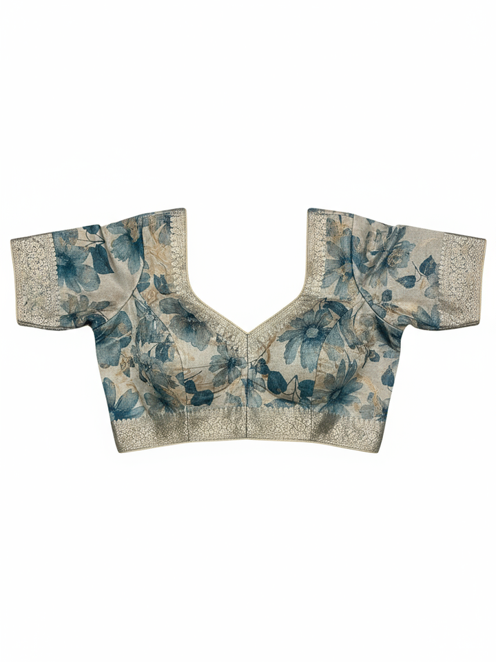 Beige Printed Silk Blend Saree With Unstitched Blouse Piece