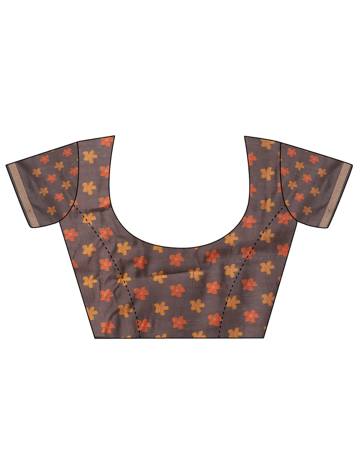 Beige Printed Silk Blend Saree With Unstitched Blouse Piece