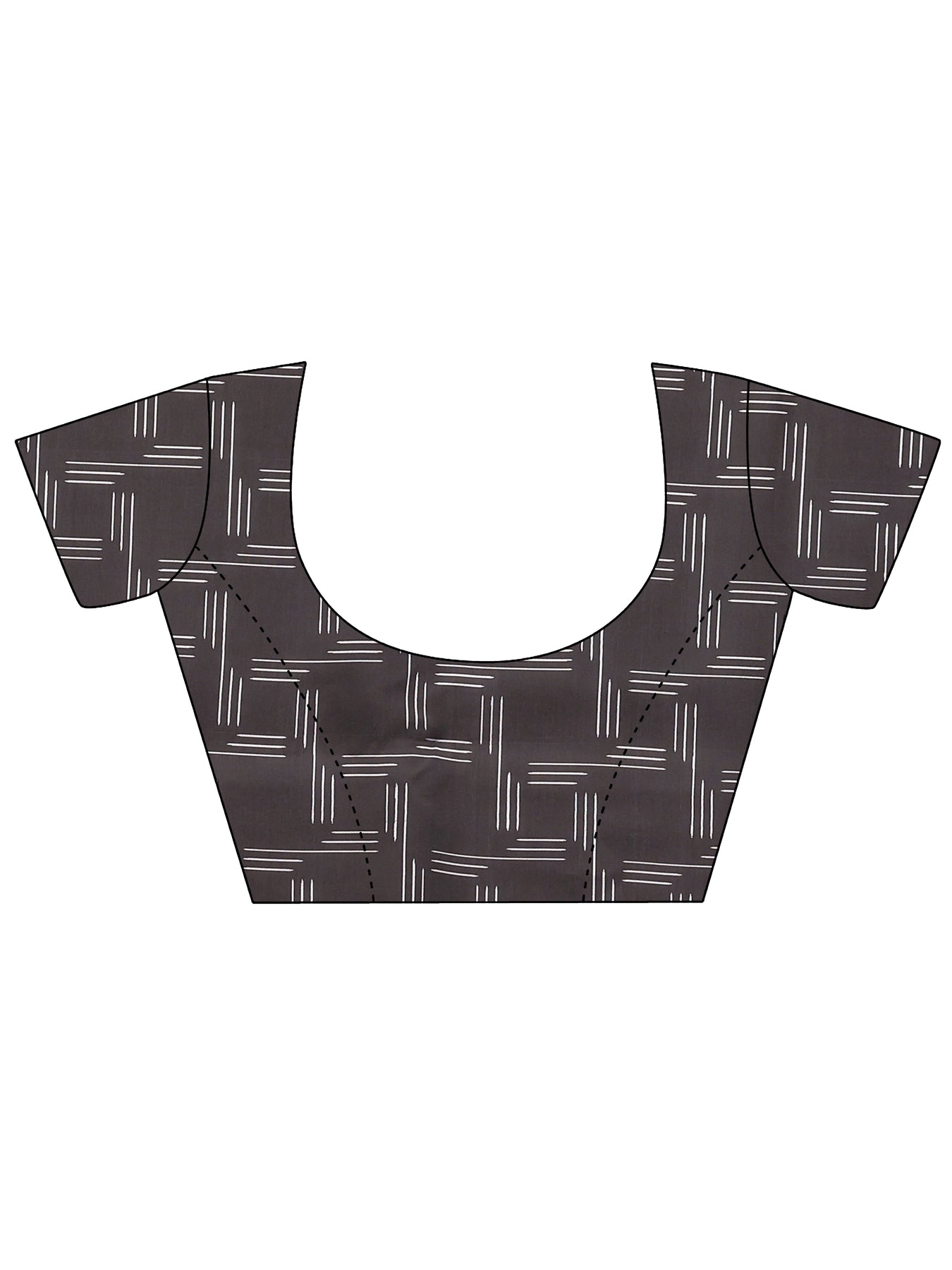 Black Animal Printed Satin Saree With Unstitched Blouse Piece