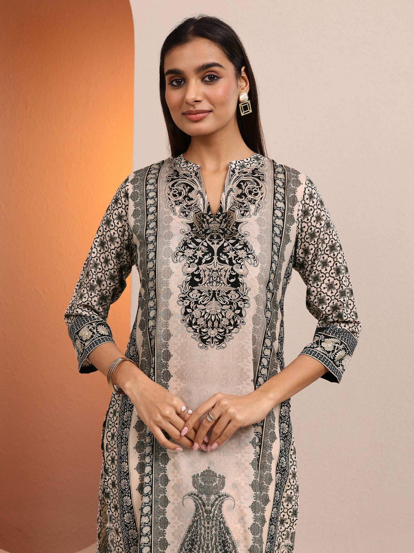 Black Printed Cotton Blend Straight Suit Set With Dupatta