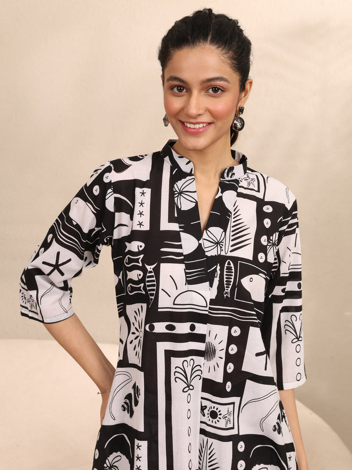 Black Printed Cotton Night Suit