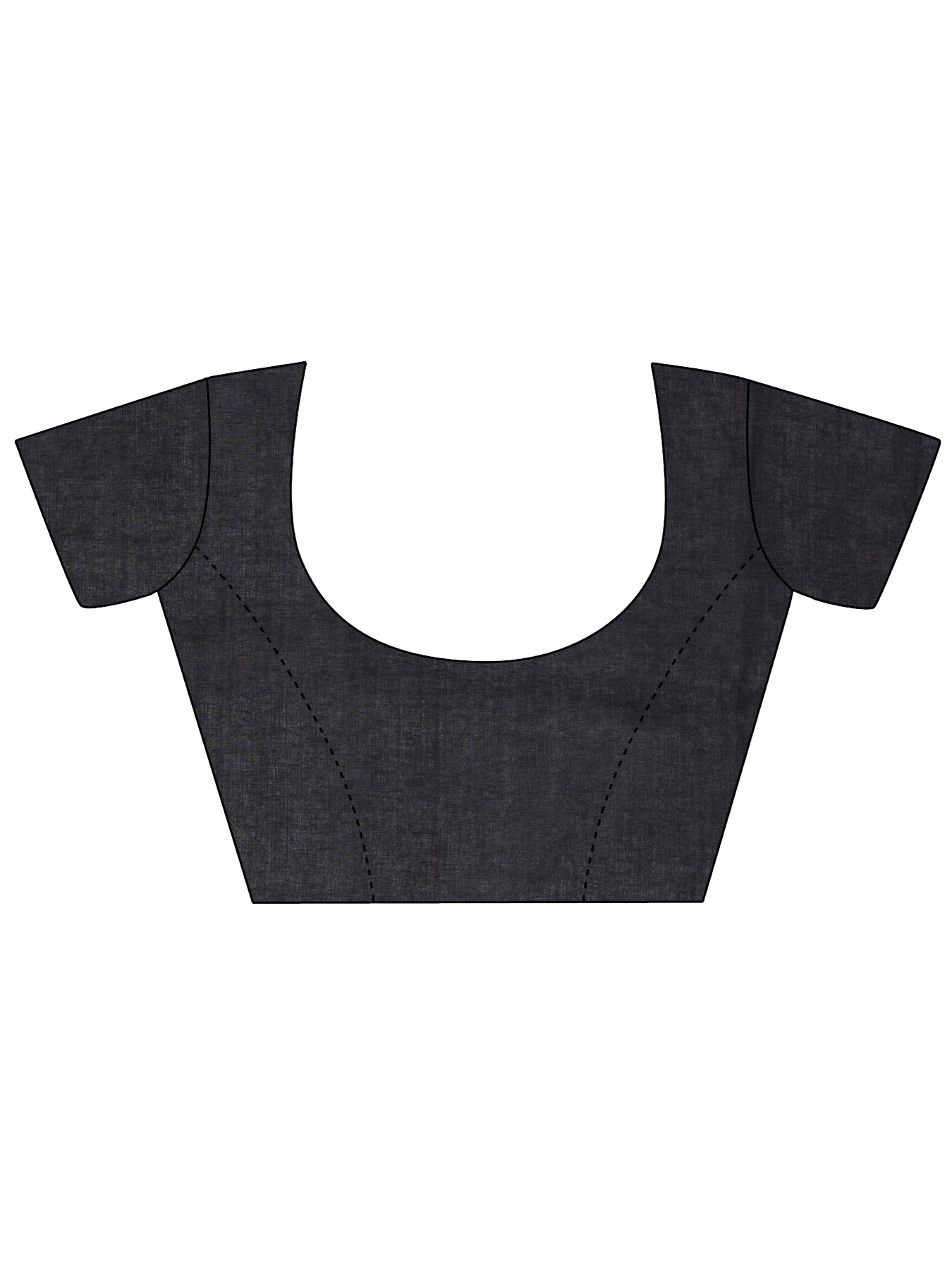 Black Printed Cotton Saree With Unstitched Blouse Piece