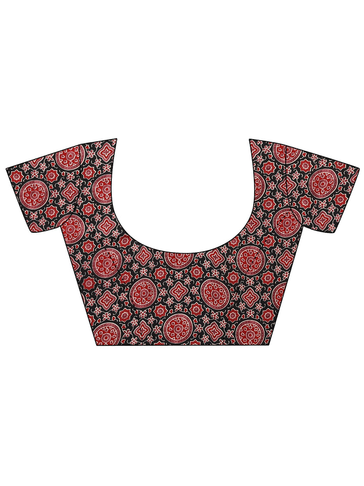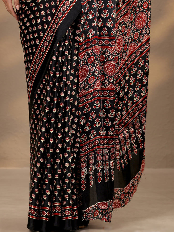 Black Printed Satin Saree With Unstitched Blouse Piece