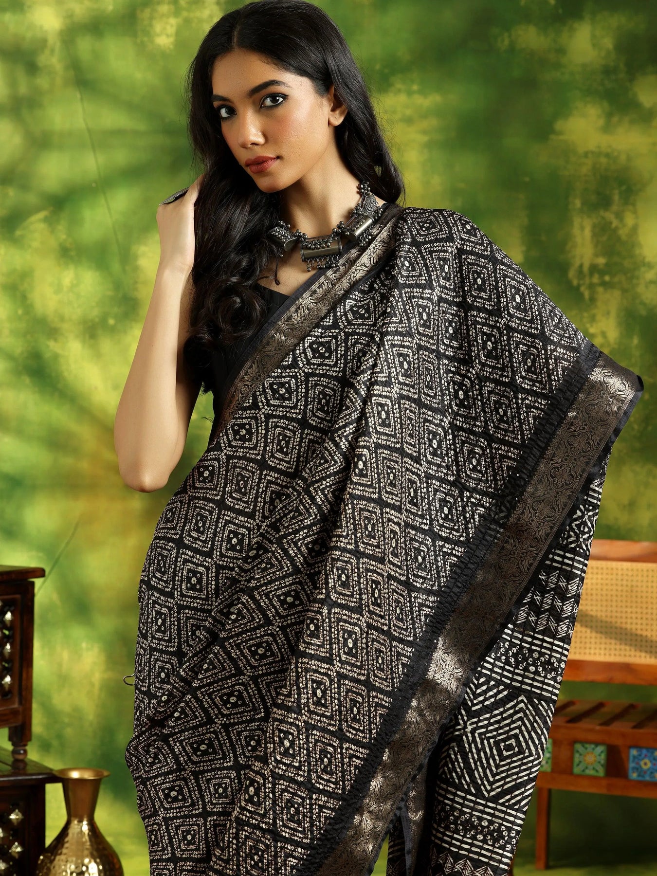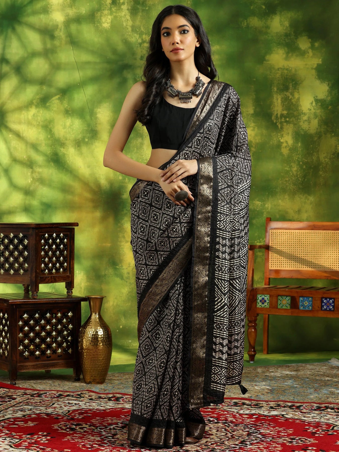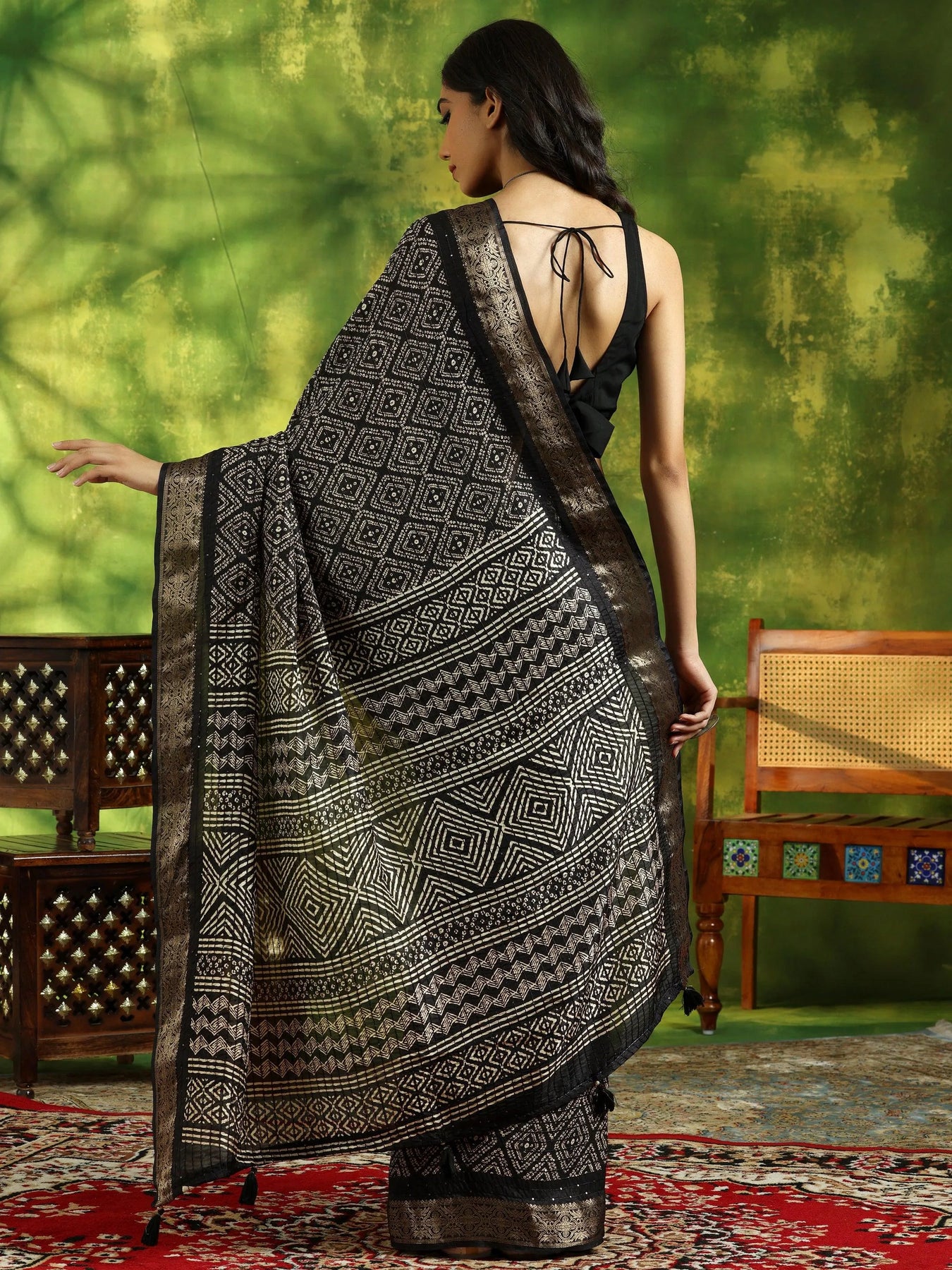 {"id":8156400418966,"title":"Black Printed Silk Blend Saree With Unstitched Blouse Piece","handle":"black-printed-silk-blend-saree-with-unstitched-blouse-piece-16023","description":"\u003cp\u003eOur black ethnic motifs printed saree, crafted in sumptuous silk blend fabric, features a woven design Zari border and delicate tassels. This elegant style is perfect for casual outings.\u003c\/p\u003e","published_at":"2024-06-04T16:17:03+05:30","created_at":"2024-06-01T14:40:09+05:30","vendor":"Libas","type":"All Products","tags":["16023","Black","Black Sarees","Daily Wear Sarees","Designer Sarees","EXCLA","Festive Collection","Floral Sarees","Karva Chauth Dresses","KARVACHAUTH","KARWACHAUTH2024","New Launch","OfficewearSAR","Printed Sarees","Raksha Bandhan Mela","Regular Sarees","SALE-P","Saree","Sarees","Silk Sarees","SS24","SS24 SAREES","Wedding Collection","Wedding Sarees","Zari Work Sarees"],"price":149900,"price_min":149900,"price_max":149900,"available":false,"price_varies":false,"compare_at_price":249900,"compare_at_price_min":249900,"compare_at_price_max":249900,"compare_at_price_varies":false,"variants":[{"id":43725042778262,"title":"Onesize","option1":"Onesize","option2":null,"option3":null,"sku":"16023","requires_shipping":true,"taxable":true,"featured_image":{"id":36188912910486,"product_id":8156400418966,"position":1,"created_at":"2024-06-01T17:27:15+05:30","updated_at":"2025-08-25T11:45:28+05:30","alt":"Black Printed Silk Blend Saree With Unstitched Blouse Piece - Libas","width":2160,"height":2880,"src":"\/\/www.libas.in\/cdn\/shop\/files\/1_87a2f0a1-0e4d-4b41-b291-f69d826b6c4f.jpg?v=1756102528","variant_ids":[43725042778262]},"available":false,"name":"Black Printed Silk Blend Saree With Unstitched Blouse Piece - Onesize","public_title":"Onesize","options":["Onesize"],"price":149900,"weight":250,"compare_at_price":249900,"inventory_management":"shopify","barcode":"8909076188112","featured_media":{"alt":"Black Printed Silk Blend Saree With Unstitched Blouse Piece - Libas","id":28694453452950,"position":1,"preview_image":{"aspect_ratio":0.75,"height":2880,"width":2160,"src":"\/\/www.libas.in\/cdn\/shop\/files\/1_87a2f0a1-0e4d-4b41-b291-f69d826b6c4f.jpg?v=1756102528"}},"requires_selling_plan":false,"selling_plan_allocations":[],"quantity_rule":{"min":1,"max":null,"increment":1}}],"images":["\/\/www.libas.in\/cdn\/shop\/files\/1_87a2f0a1-0e4d-4b41-b291-f69d826b6c4f.jpg?v=1756102528","\/\/www.libas.in\/cdn\/shop\/files\/2_90b3aff3-b8a1-46c9-a5b8-d8ea5a5e38c1.jpg?v=1756102528","\/\/www.libas.in\/cdn\/shop\/files\/3_f3b751a0-ef7f-4454-bb44-eea922337831.jpg?v=1756102528","\/\/www.libas.in\/cdn\/shop\/files\/4_1ece3483-3f0b-48da-94c8-fee3dbed33cb.jpg?v=1756102528","\/\/www.libas.in\/cdn\/shop\/files\/5_336a5762-e209-4490-846d-6f5f6bf7aaf8.jpg?v=1756102529","\/\/www.libas.in\/cdn\/shop\/files\/6_23aaaeea-a154-44e6-abef-02d6ca34a81d.jpg?v=1756102529","\/\/www.libas.in\/cdn\/shop\/files\/7_dc2d66c3-1f26-41aa-af8c-eaf0c785909c.jpg?v=1756102529","\/\/www.libas.in\/cdn\/shop\/files\/27.jpg?v=1756102529"],"featured_image":"\/\/www.libas.in\/cdn\/shop\/files\/1_87a2f0a1-0e4d-4b41-b291-f69d826b6c4f.jpg?v=1756102528","options":["Size"],"media":[{"alt":"Black Printed Silk Blend Saree With Unstitched Blouse Piece - Libas","id":28694453452950,"position":1,"preview_image":{"aspect_ratio":0.75,"height":2880,"width":2160,"src":"\/\/www.libas.in\/cdn\/shop\/files\/1_87a2f0a1-0e4d-4b41-b291-f69d826b6c4f.jpg?v=1756102528"},"aspect_ratio":0.75,"height":2880,"media_type":"image","src":"\/\/www.libas.in\/cdn\/shop\/files\/1_87a2f0a1-0e4d-4b41-b291-f69d826b6c4f.jpg?v=1756102528","width":2160},{"alt":"Black Printed Silk Blend Saree With Unstitched Blouse Piece - Libas","id":28694453485718,"position":2,"preview_image":{"aspect_ratio":0.75,"height":2880,"width":2160,"src":"\/\/www.libas.in\/cdn\/shop\/files\/2_90b3aff3-b8a1-46c9-a5b8-d8ea5a5e38c1.jpg?v=1756102528"},"aspect_ratio":0.75,"height":2880,"media_type":"image","src":"\/\/www.libas.in\/cdn\/shop\/files\/2_90b3aff3-b8a1-46c9-a5b8-d8ea5a5e38c1.jpg?v=1756102528","width":2160},{"alt":"Black Printed Silk Blend Saree With Unstitched Blouse Piece - Libas","id":28694453256342,"position":3,"preview_image":{"aspect_ratio":0.75,"height":2880,"width":2160,"src":"\/\/www.libas.in\/cdn\/shop\/files\/3_f3b751a0-ef7f-4454-bb44-eea922337831.jpg?v=1756102528"},"aspect_ratio":0.75,"height":2880,"media_type":"image","src":"\/\/www.libas.in\/cdn\/shop\/files\/3_f3b751a0-ef7f-4454-bb44-eea922337831.jpg?v=1756102528","width":2160},{"alt":"Black Printed Silk Blend Saree With Unstitched Blouse Piece - Libas","id":28694453289110,"position":4,"preview_image":{"aspect_ratio":0.75,"height":2880,"width":2160,"src":"\/\/www.libas.in\/cdn\/shop\/files\/4_1ece3483-3f0b-48da-94c8-fee3dbed33cb.jpg?v=1756102528"},"aspect_ratio":0.75,"height":2880,"media_type":"image","src":"\/\/www.libas.in\/cdn\/shop\/files\/4_1ece3483-3f0b-48da-94c8-fee3dbed33cb.jpg?v=1756102528","width":2160},{"alt":"Black Printed Silk Blend Saree With Unstitched Blouse Piece - Libas","id":28694453321878,"position":5,"preview_image":{"aspect_ratio":0.75,"height":2880,"width":2160,"src":"\/\/www.libas.in\/cdn\/shop\/files\/5_336a5762-e209-4490-846d-6f5f6bf7aaf8.jpg?v=1756102529"},"aspect_ratio":0.75,"height":2880,"media_type":"image","src":"\/\/www.libas.in\/cdn\/shop\/files\/5_336a5762-e209-4490-846d-6f5f6bf7aaf8.jpg?v=1756102529","width":2160},{"alt":"Black Printed Silk Blend Saree With Unstitched Blouse Piece - Libas","id":28694453354646,"position":6,"preview_image":{"aspect_ratio":0.75,"height":2880,"width":2160,"src":"\/\/www.libas.in\/cdn\/shop\/files\/6_23aaaeea-a154-44e6-abef-02d6ca34a81d.jpg?v=1756102529"},"aspect_ratio":0.75,"height":2880,"media_type":"image","src":"\/\/www.libas.in\/cdn\/shop\/files\/6_23aaaeea-a154-44e6-abef-02d6ca34a81d.jpg?v=1756102529","width":2160},{"alt":"Black Printed Silk Blend Saree With Unstitched Blouse Piece - Libas","id":28694453387414,"position":7,"preview_image":{"aspect_ratio":0.7