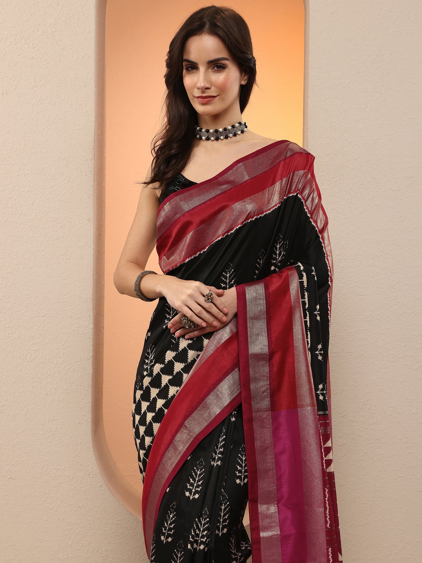 "product_collections": "Above 1000,Black Outfits,Black Sarees,Chanderi Silk Sarees,Diwali Sarees,Durga Puja Sarees,Engagement Sarees,Ethnic Wear for Women,Fancy Sarees,Floral Print Sarees,indian sarees,Karwa Chauth Saree,New Arrivals,Sarees for Women,Silk Printed Sarees,Silk Sarees,Silken Treasures,Soft Silk Sarees,Swadeshi,Traditional Sarees"