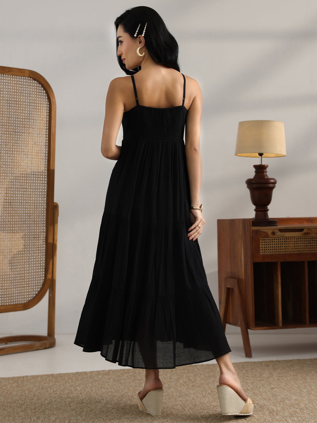 Black Solid Silk Blend Fit And Flare One Piece Dress