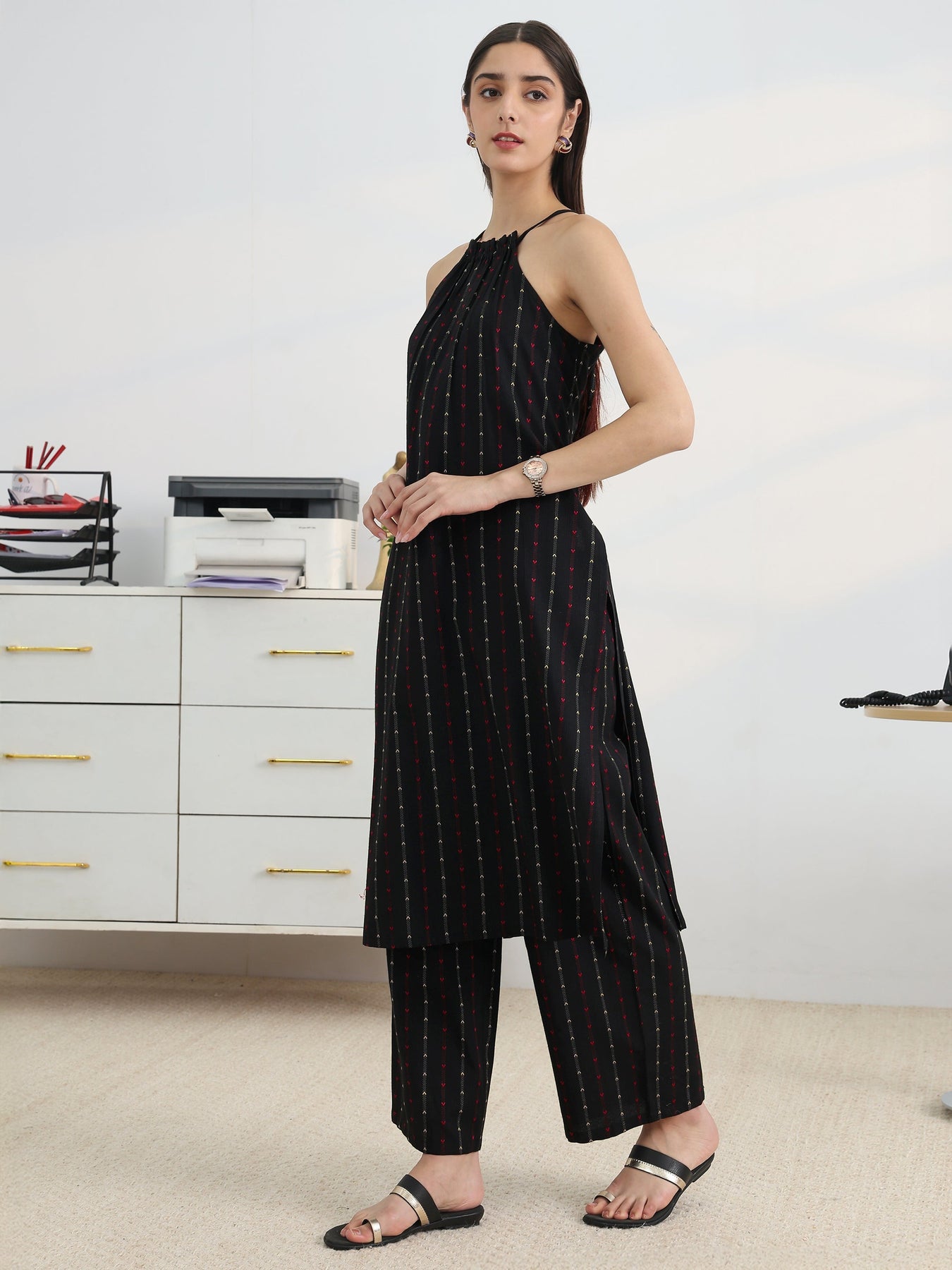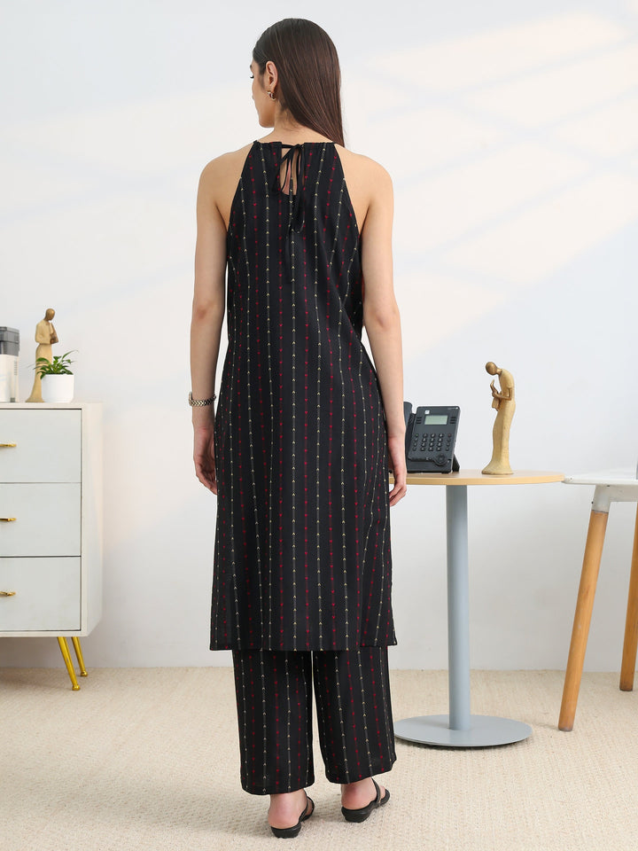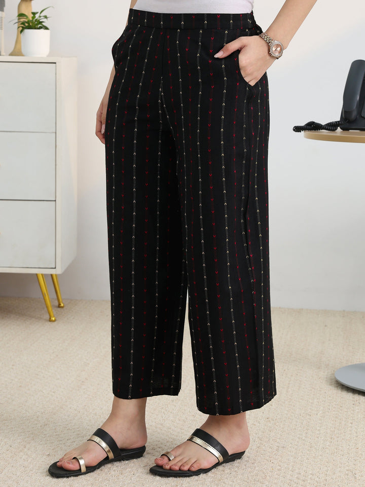 Black Woven Design Cotton Blend Straight Kurta Set