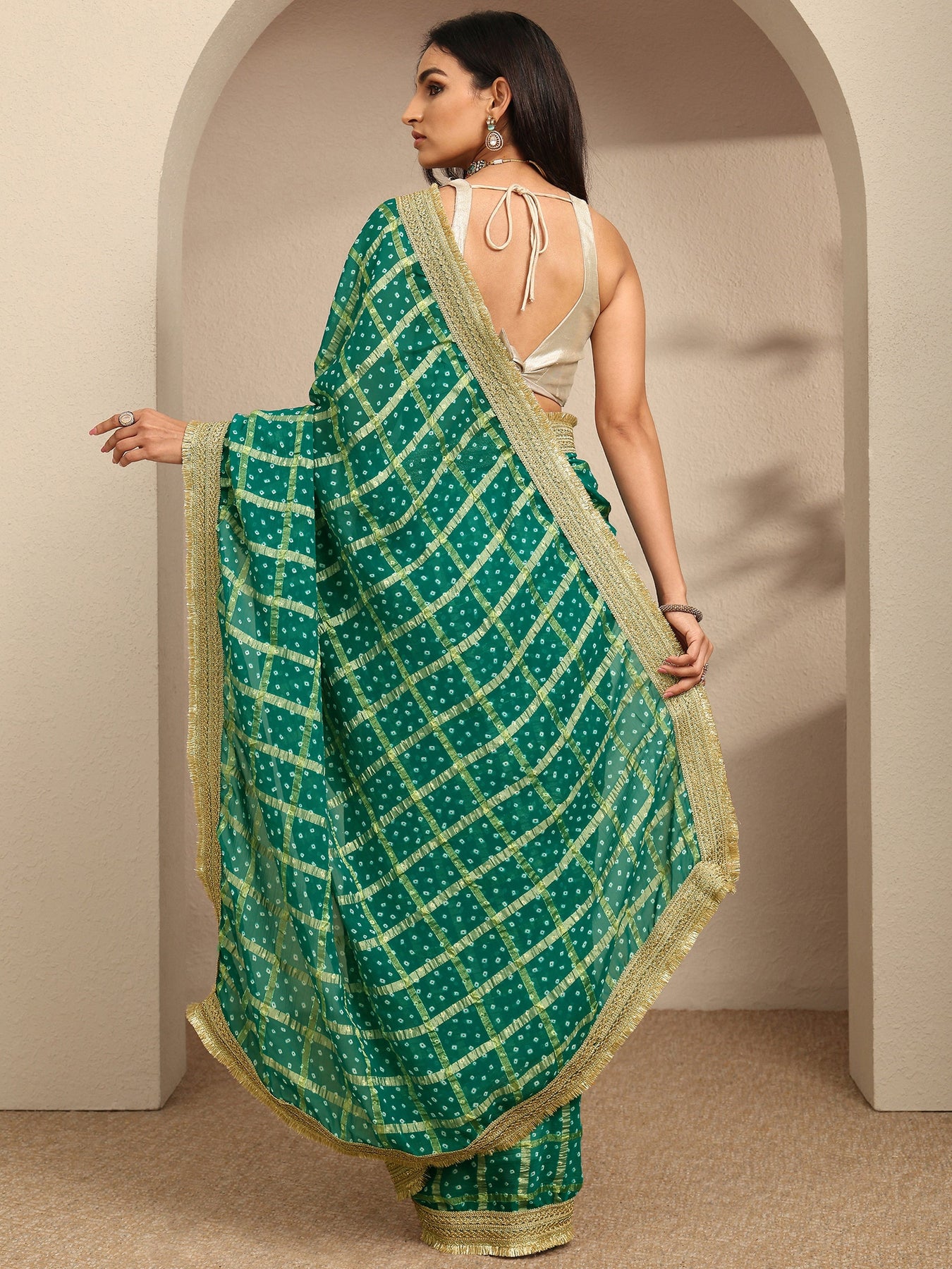 Blue Bandhani Printed Silk Blend Saree With Unstitched Blouse Piece