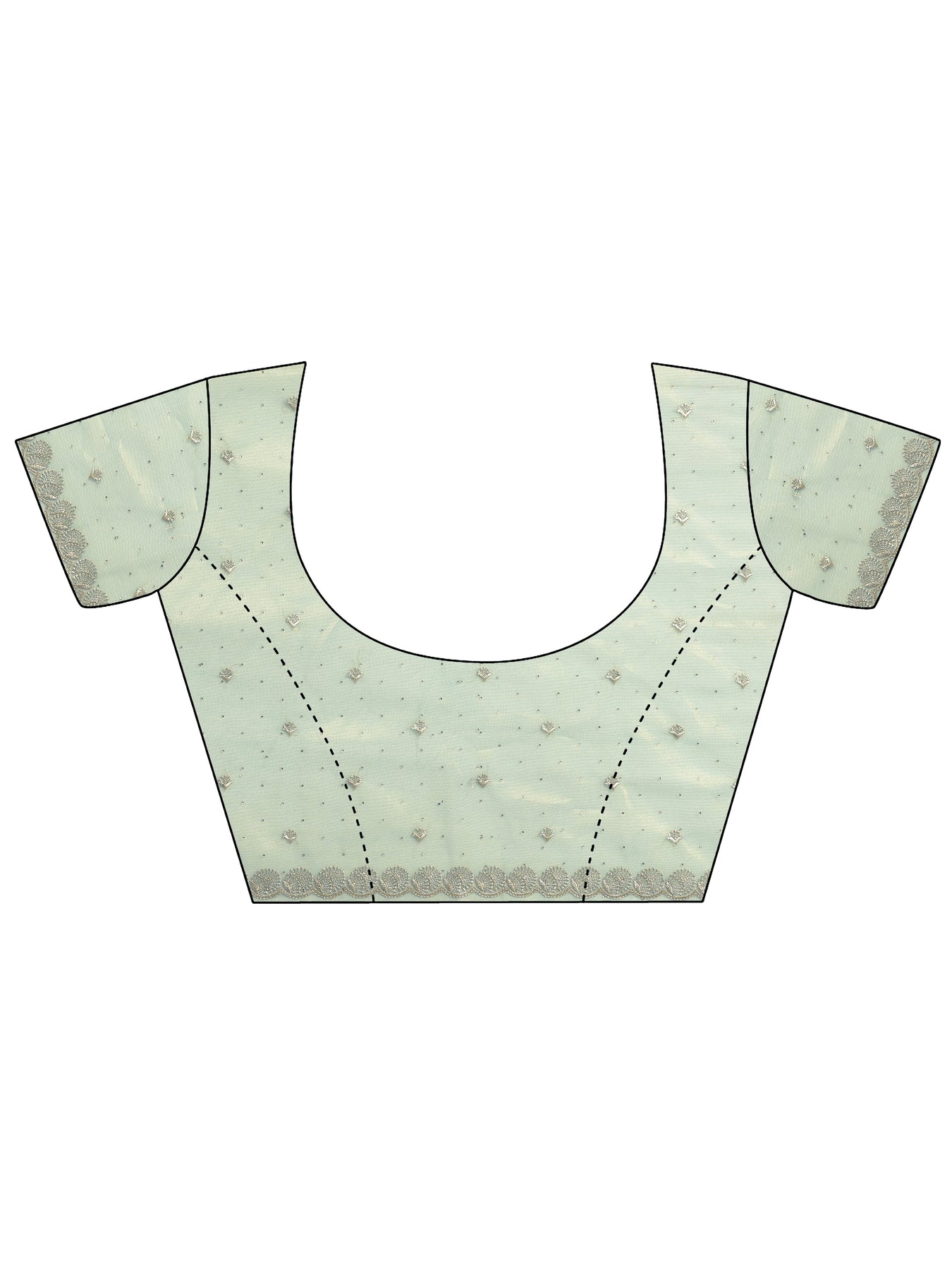 Blue Embellished Nylon Saree With Unstitched Blouse Piece