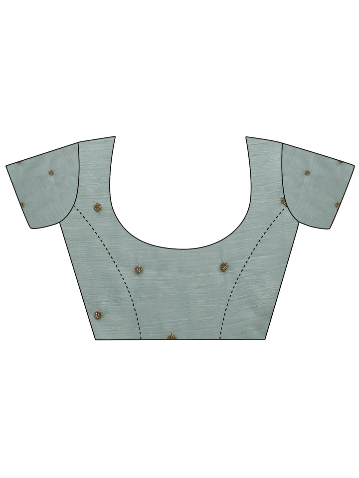 Blue Embellished Silk Blend Saree With Unstitched Blouse Piece