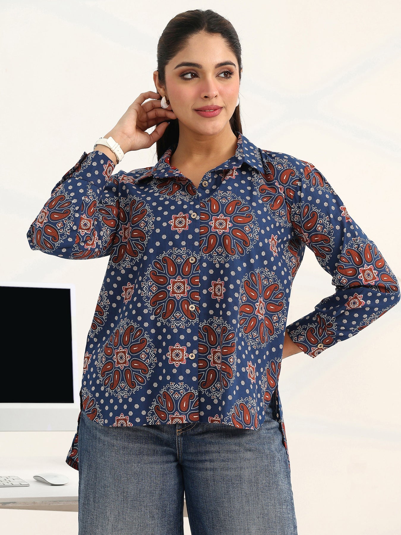 Blue Paisley Printed Cotton Shirt
